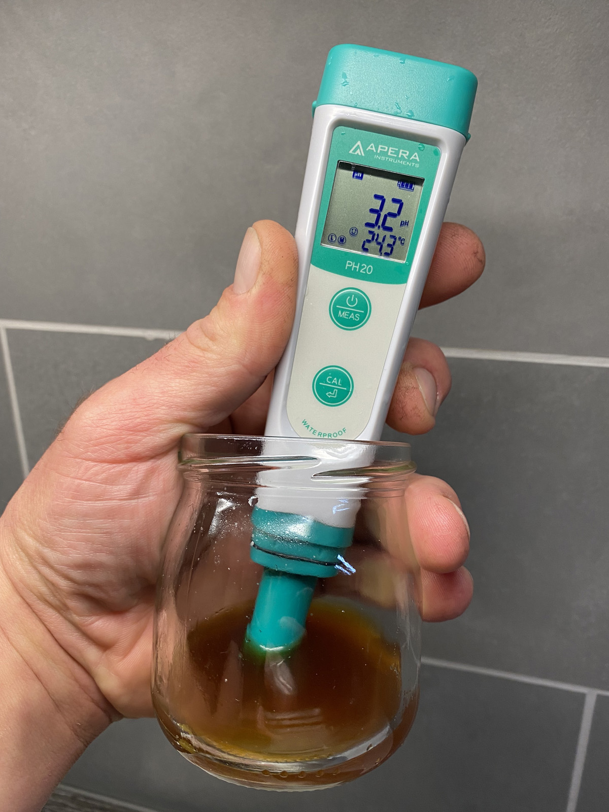 Das Salty Caramel Brown Ale hat übrigens einen sportlichen pH-Wert von ca. 3,2. Ganz schön sauer... Wer wohnt da bloß in meinem Fass? Zum fruchtig-hopfigen Saison könnte das aber ganz gut passen.