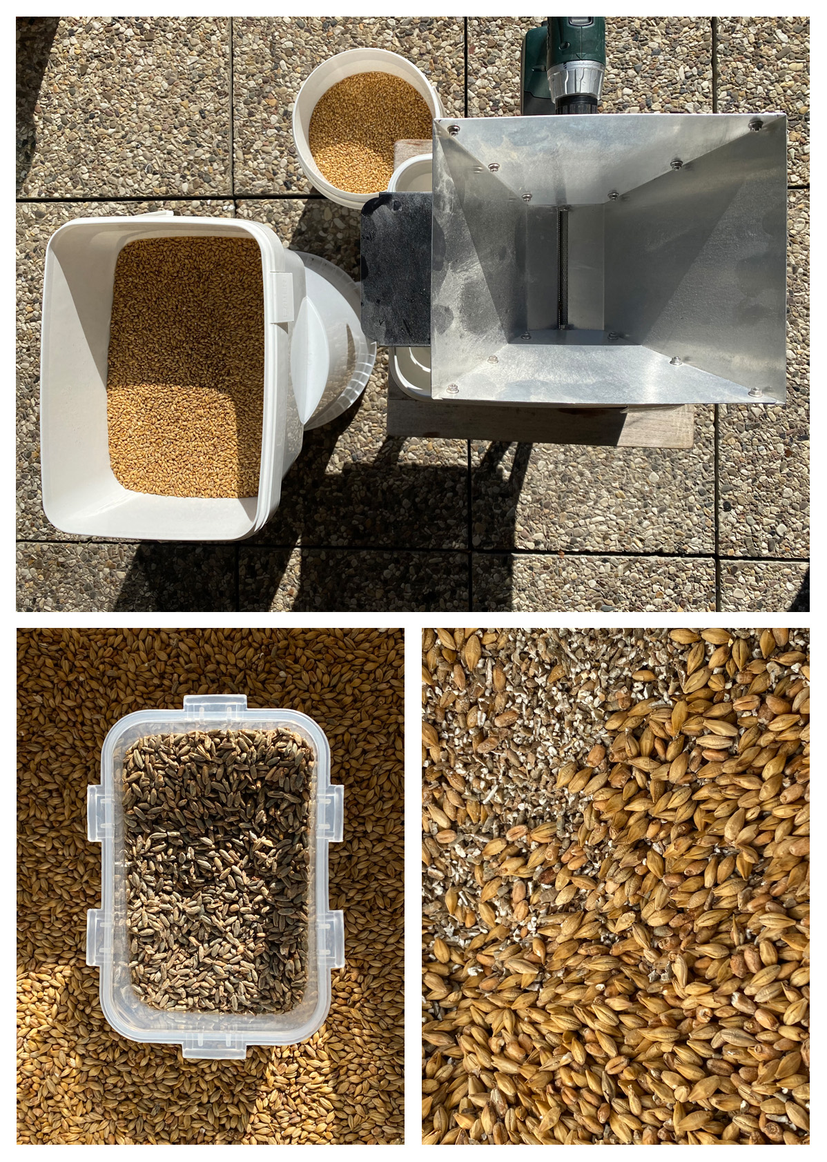 Ich habe auch separat geschrotet. Da das Roggenmalz ziemlich mickrig war, ist es doppelt durch die Mühle gegangen. Die Körner kamen mir recht klein vor.