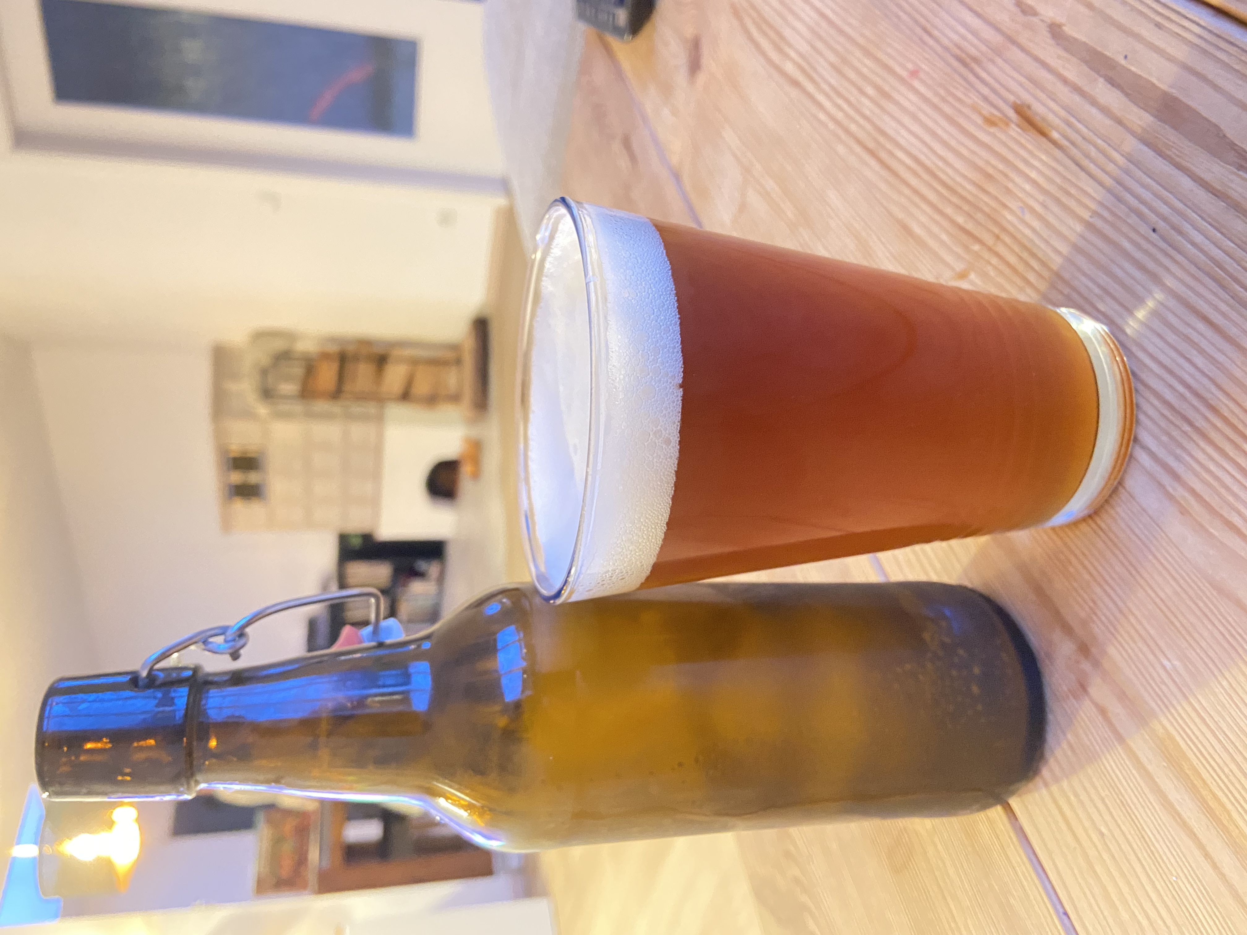 Heute die erste Flasche meines Red/Amber IPA, meiner erst Sud inkl Cascade Hopfenstopfen und cold crush.