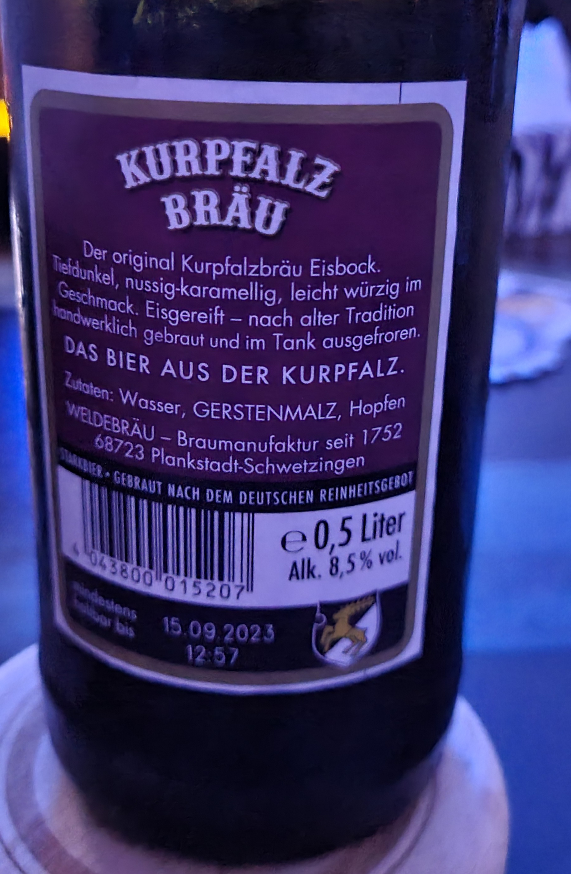 Die 8.5% Alc schmeckt man Null..Sehr rund im Geschmack, schöne Malznote...bin gespannt welche Hefe verwendet wurde...