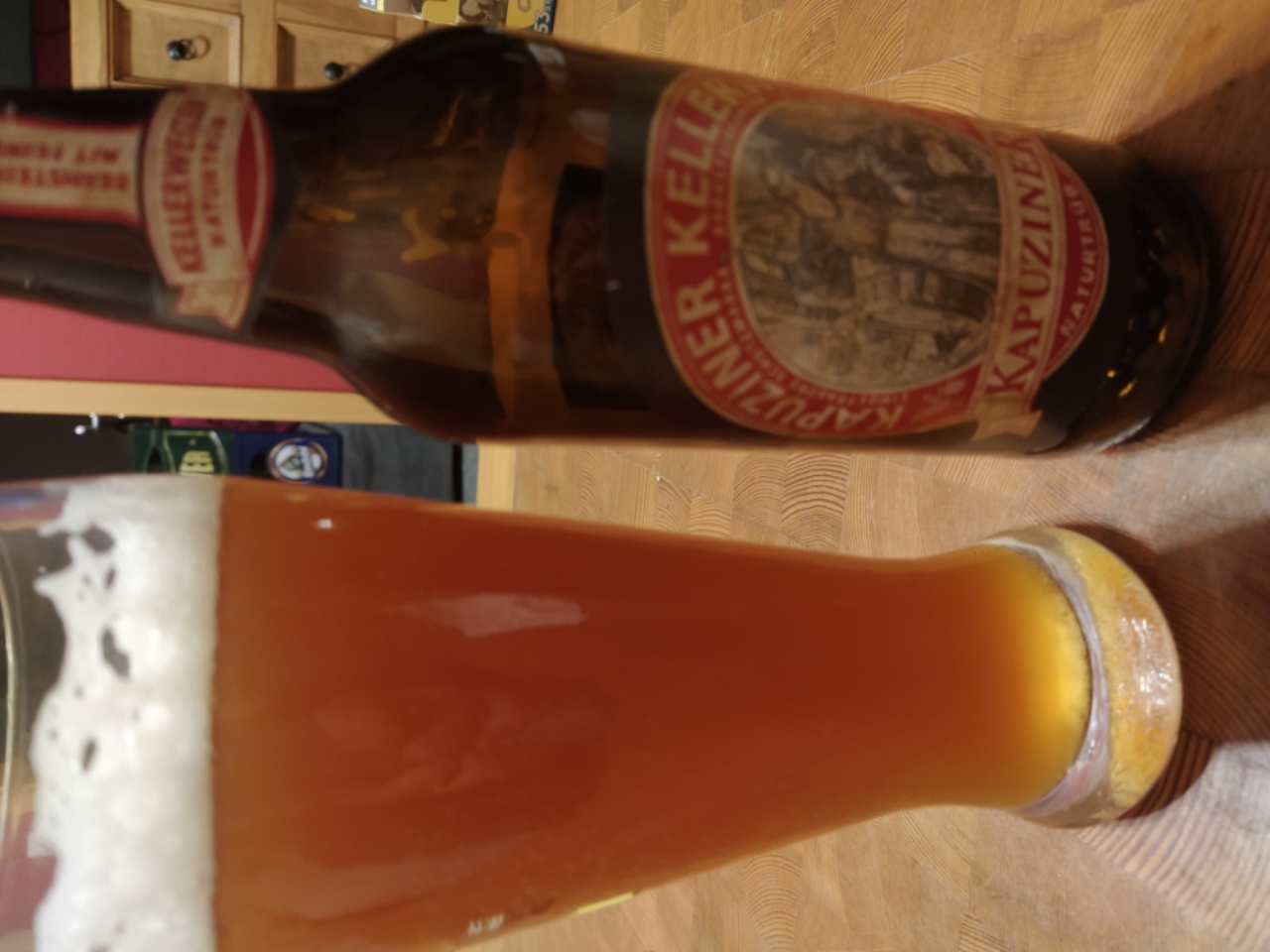Und jetzt die erste Kostprobe meines Kürbisbiers. Is noch recht jung und etwas unrund, Gewürze sind subtil vorhanden und den Kürbis (4,5kg auf 10L) merkt man nur in der Bierfarbe. Mal sehen wie das in zwei Wochen schmeckt.