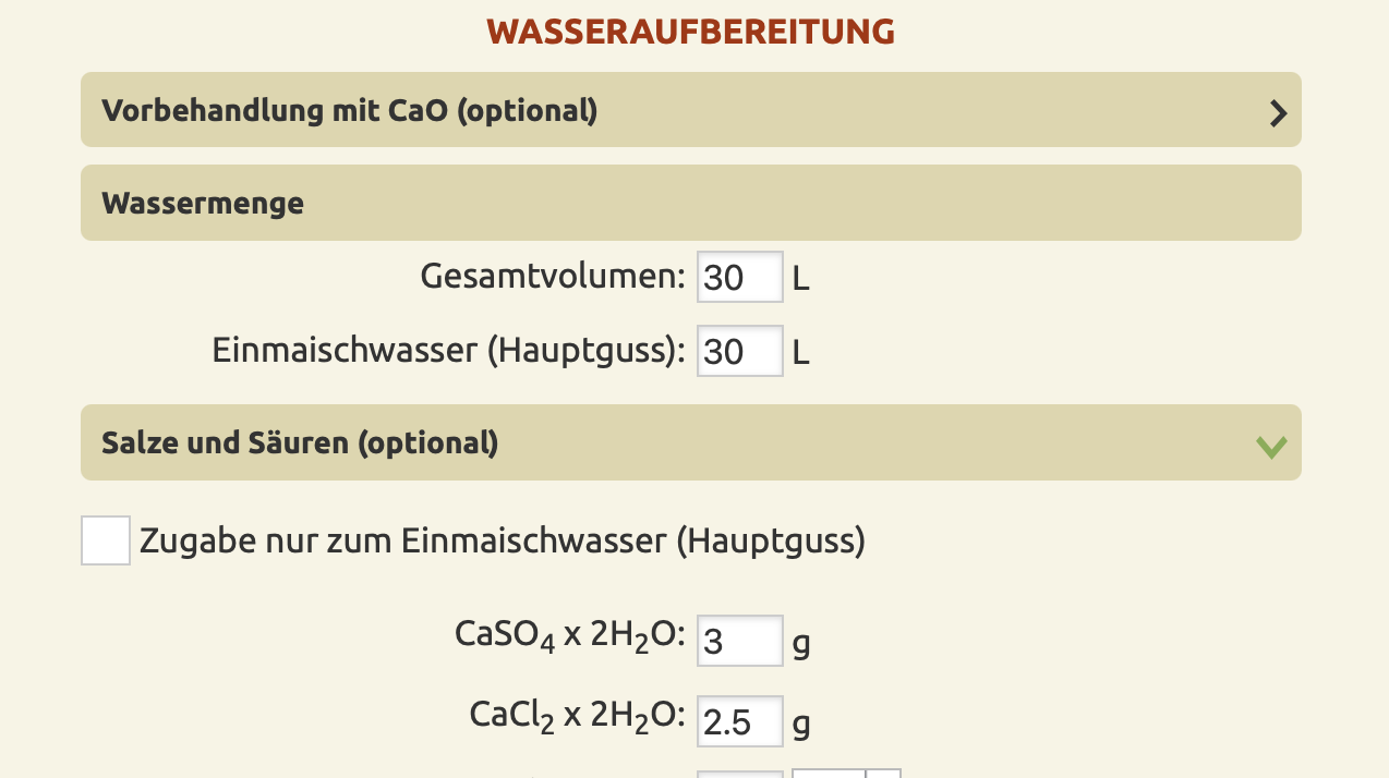Ich möchte den Rechner von www.maischemalzundmehr.de nutzen. Da kann ich virtuell Salze hinzugeben und er rechnet dann durch. Unglücklicherweise stehen da aber nur Chemische Formeln drin und nicht die gebräuchlichen Verkehrsnamen.