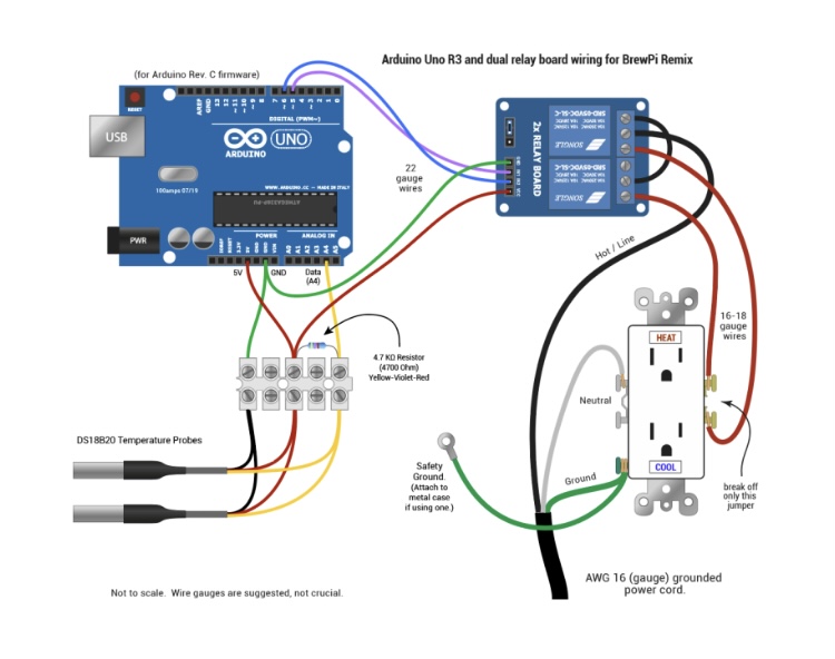 ich habe in den letzten Tagen angefangen mir einen Fermentationskontroller zusammenzubauen, es soll ein Brewpi werden. Wieder erwarten hat bisher alles wie am Schnürchen geklappt. Die Software ist aufgespielt und die Temperatursensoren funktionieren einwandfrei. Es bleibt eigentlich nur noch die Starkstromverkabelung, hier möchte ich abweichend von der Originalanleitung lediglich eine Einfachsteckdose für den Kühlschrank anschließen. Eine Wärmequelle werde ich nicht benötigen.