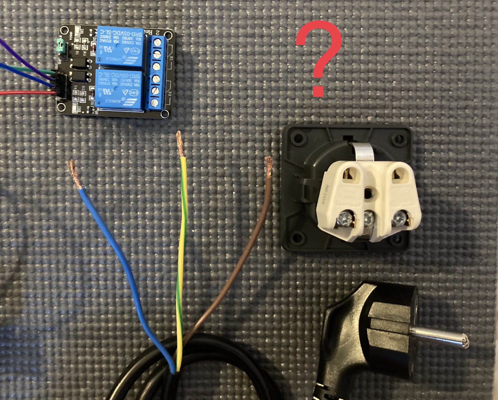 Damit es etwas sicherer wird, würde ich das 2. Relais zusammen mit dem 1. Relais schalten und den N (blau) analog zum L (rot) schalten. Dann liegt im ausgeschalteten Zustand keine Spannung an der Steckdose an.