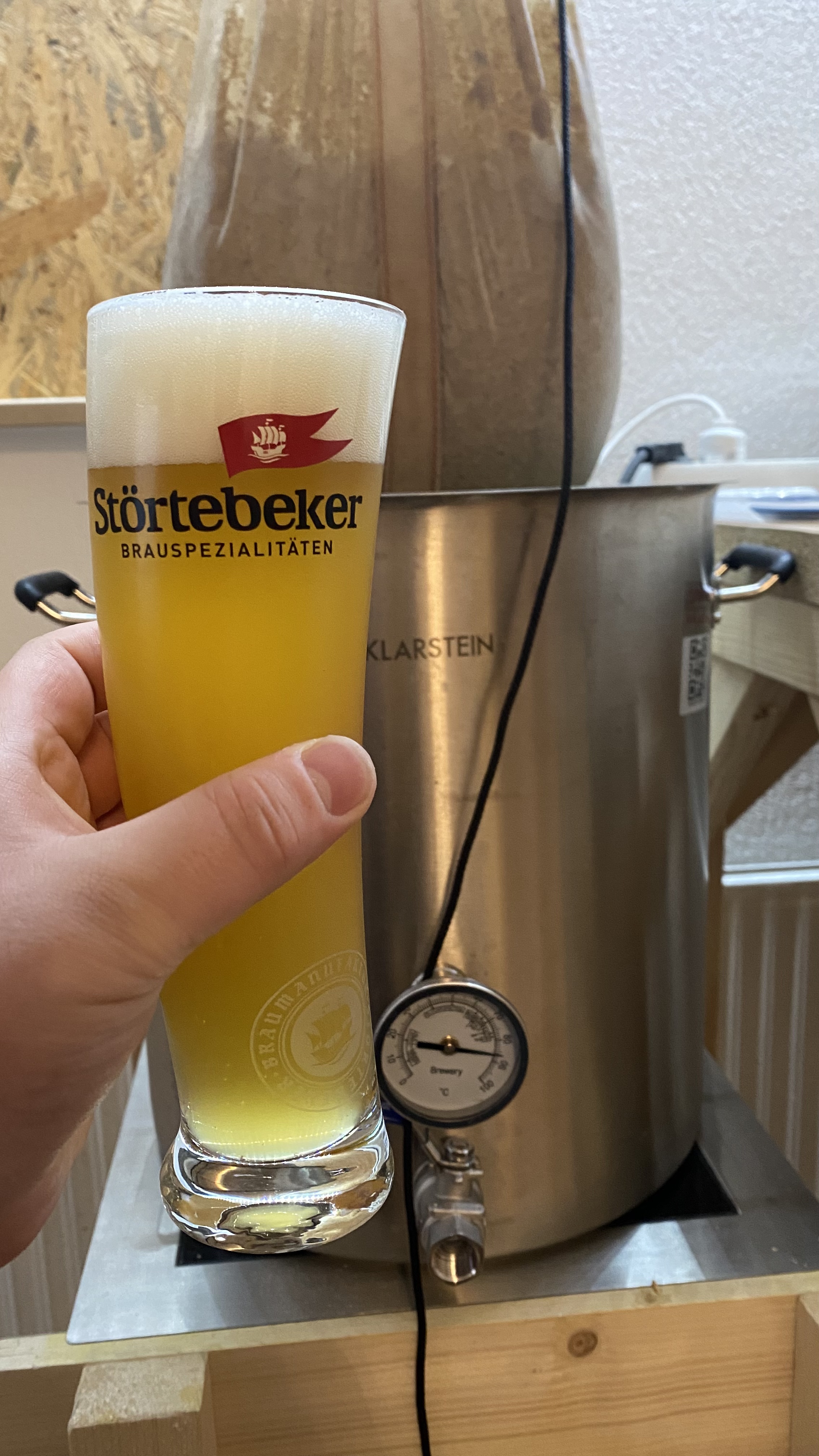 Ich habe es zwar schon als E-Book, aber eine signierte Version wäre natürlich noch viel besser! Daher ein Foto meines ersten Weissbieres (nach 5 Jahren Hobbybrauen...):
