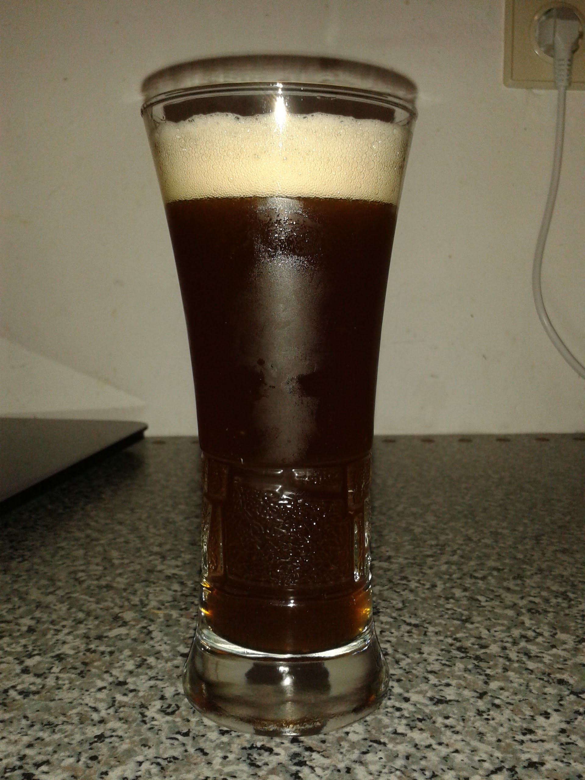 Mein diesjähriges Dry Stout. Ohne Hafer aber mit Gerstenflocken. Sehr fein! Übrigens mit nem Kompensatorhahn gezapft. Geht auch wenn wenig CO2 im Bier ist ;)