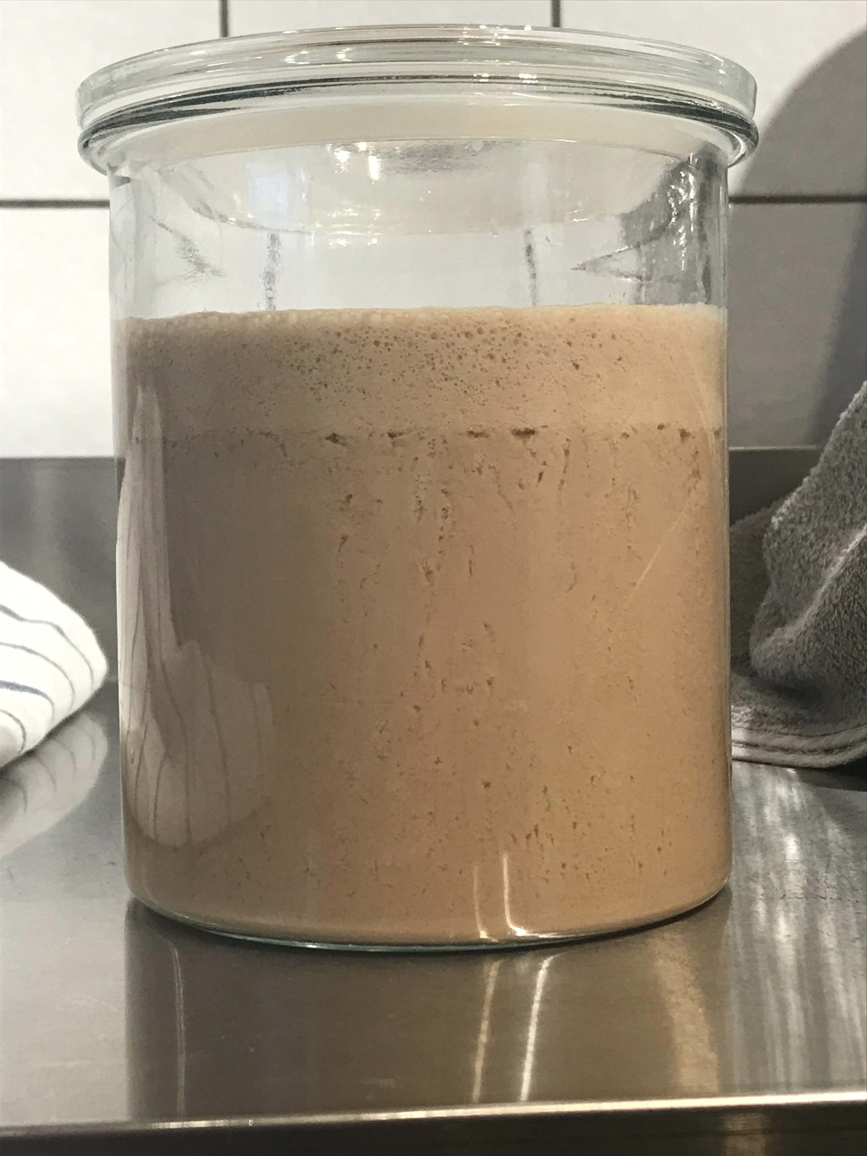 Haha! Die "Gärung" ging dann los und hat den Deckel abgehoben. Der Schaum ist ringsum am Glas runtergelaufen und der Kühlschrank war versaut.