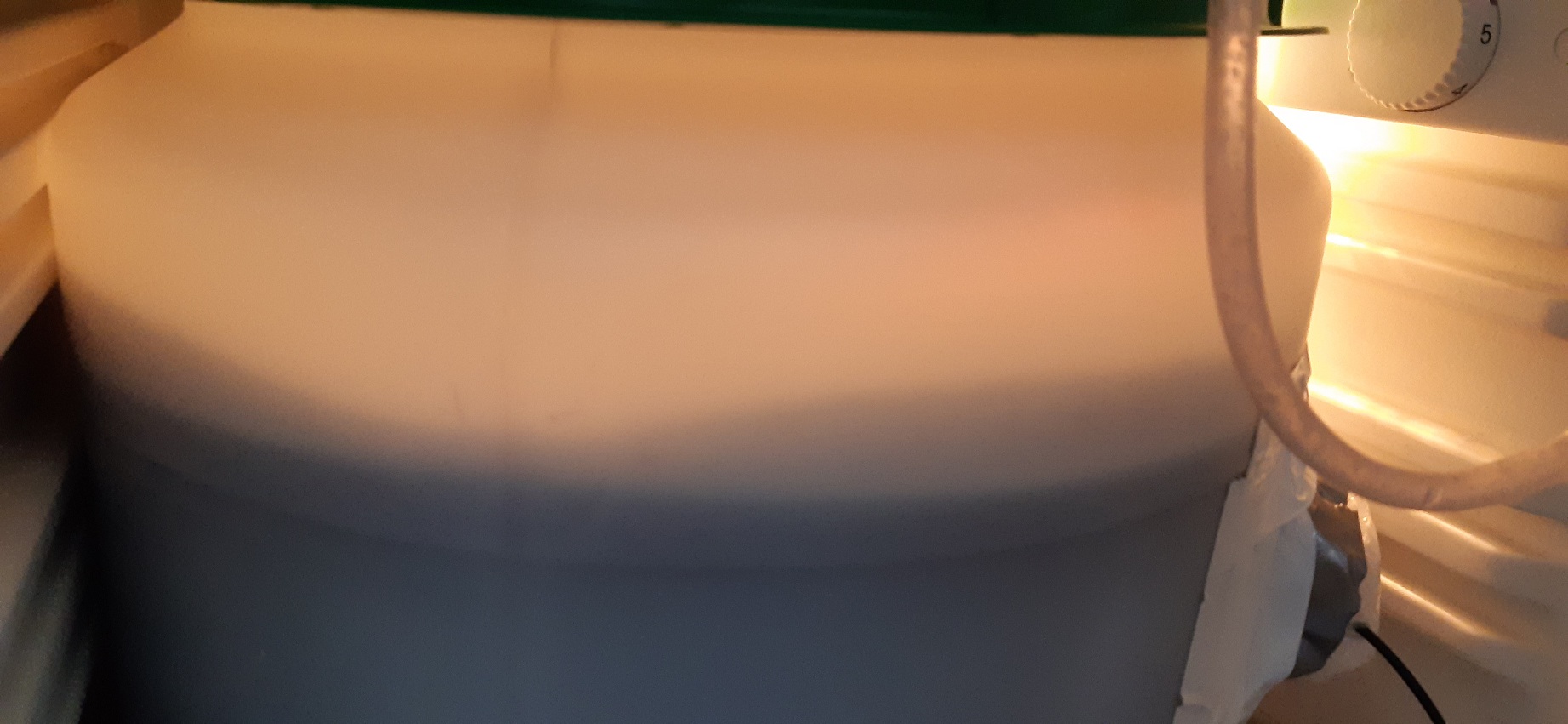 Ich bin ja tatsächlich geneigt rein zu gucken und ggf. ein Foto zu machen, aber ich halte mich mal zurück und lassen den Bottich einfach zu und vor sich hin arbeiten.