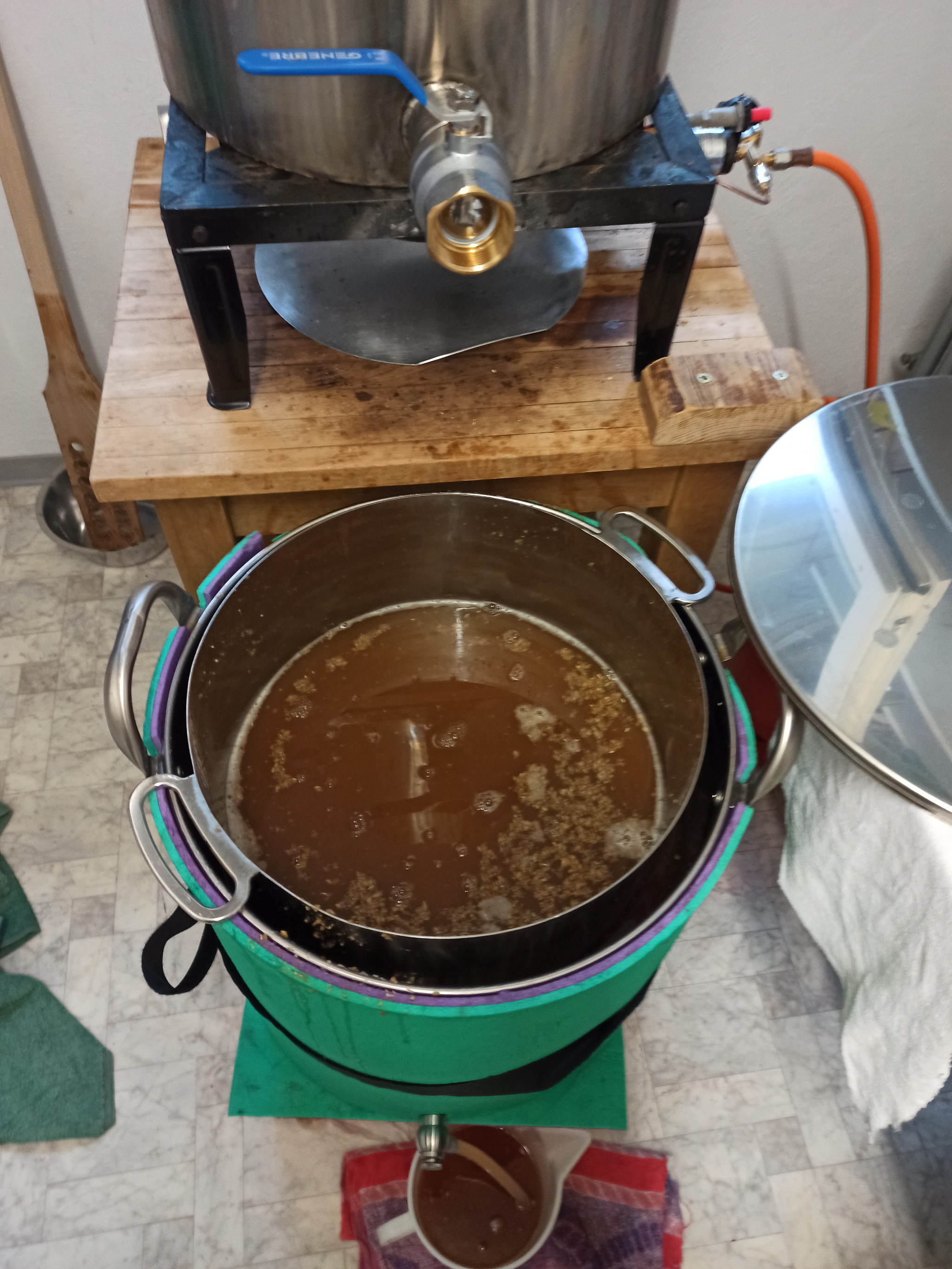 braue mit Einkochtopf und selbstgebautem Rührwerk