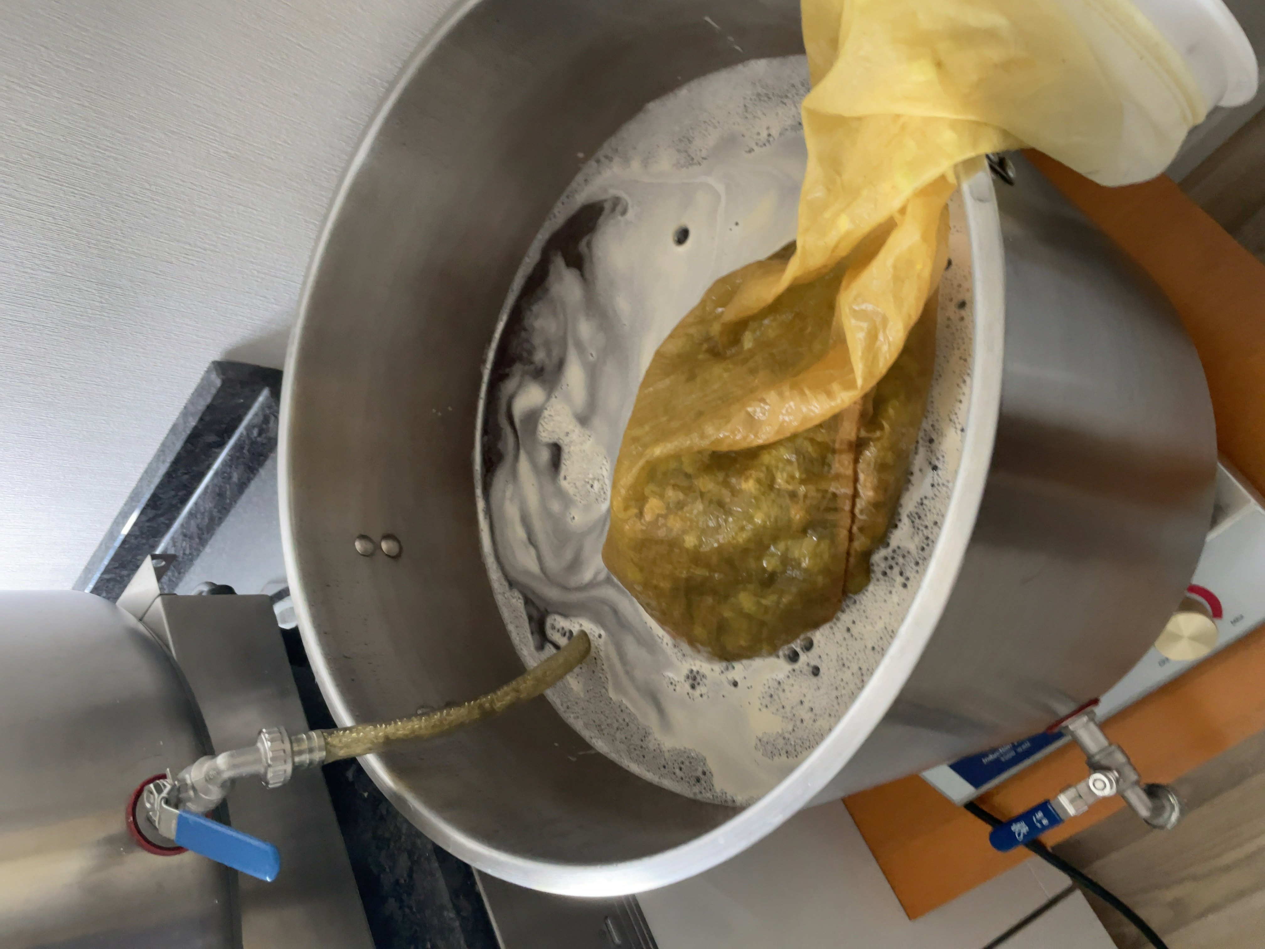 Ich freue mich, dass mehrere Freunde mittlerweile Hopfen für mich bzw. ein hoffentlich leckeres Selbstgebrautes anbauen. Hier Spalter Select und Mandarina Bavaria im Säckchen, da die Dolden sonst den Hahn verstopfen ...