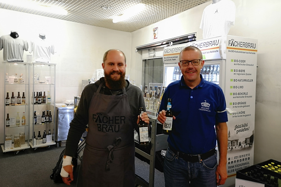 Fächerbräu ist zwar noch keine „richtige“, also stationäre Brauerei, sondern eine Wanderbrauerei, aber ein Besuch in der Fächerbräu Garage zum Fachsimpeln verbunden mit einem Bierkauf ist trotzdem was Schönes. Ganz feine Bio-Biere gibt es da in Karlsruhe: