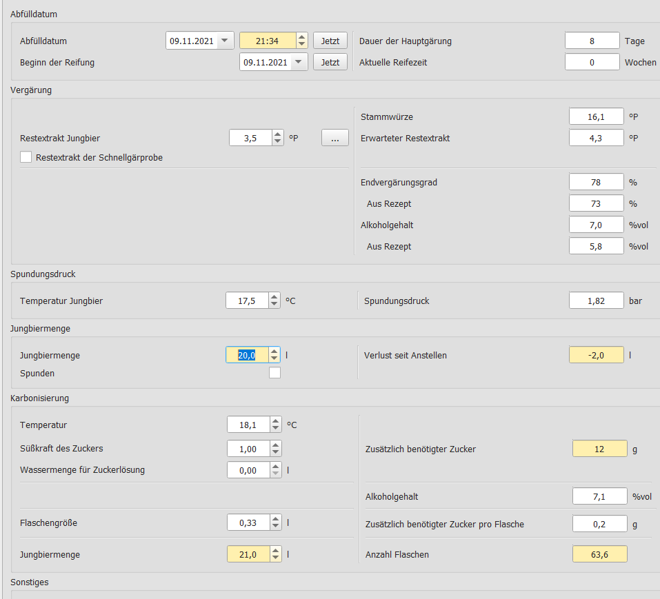 Etwas unsauber ist bei High Gravity der ausgerechnete "Verlust seit Anstellen" = -2,0L. Das ist ja genau die Menge meines High Gravity. In meinen Augen fehlt hier die Eingabemöglichkeit das tatsächlich zugefügte Glattwasser für das High Gravity einzugeben.