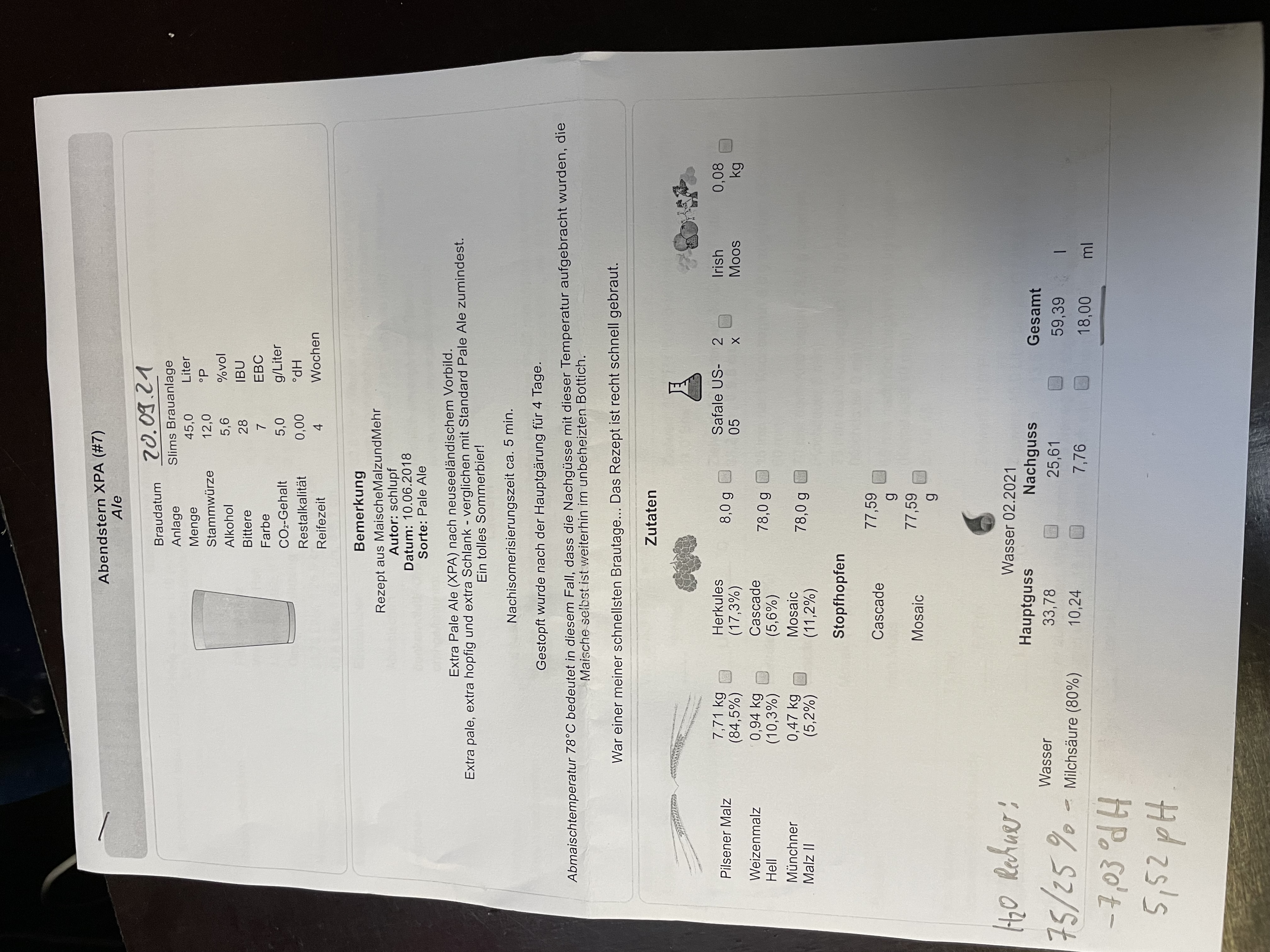 Ja irgendwo muss ich einen Dreher drin gehabt haben, mein Rechner zeigt nun auch die richtigen Werte an:schlupf hat geschrieben: Freitag 1. Oktober 2021, 07:37 Achso, der Alkoholgehalt kommt dann auch bei 5,4%vol raus, siehe Anhang...