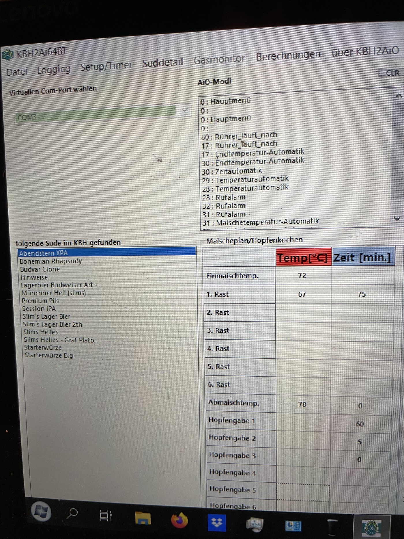 Das Rezept habe ich zuvor im KBH angepasst und kann es nun direkt aus der Datenbank des KBH in meine Steuerung laden. Rast- und Kochzeiten werden direkt übernommen.