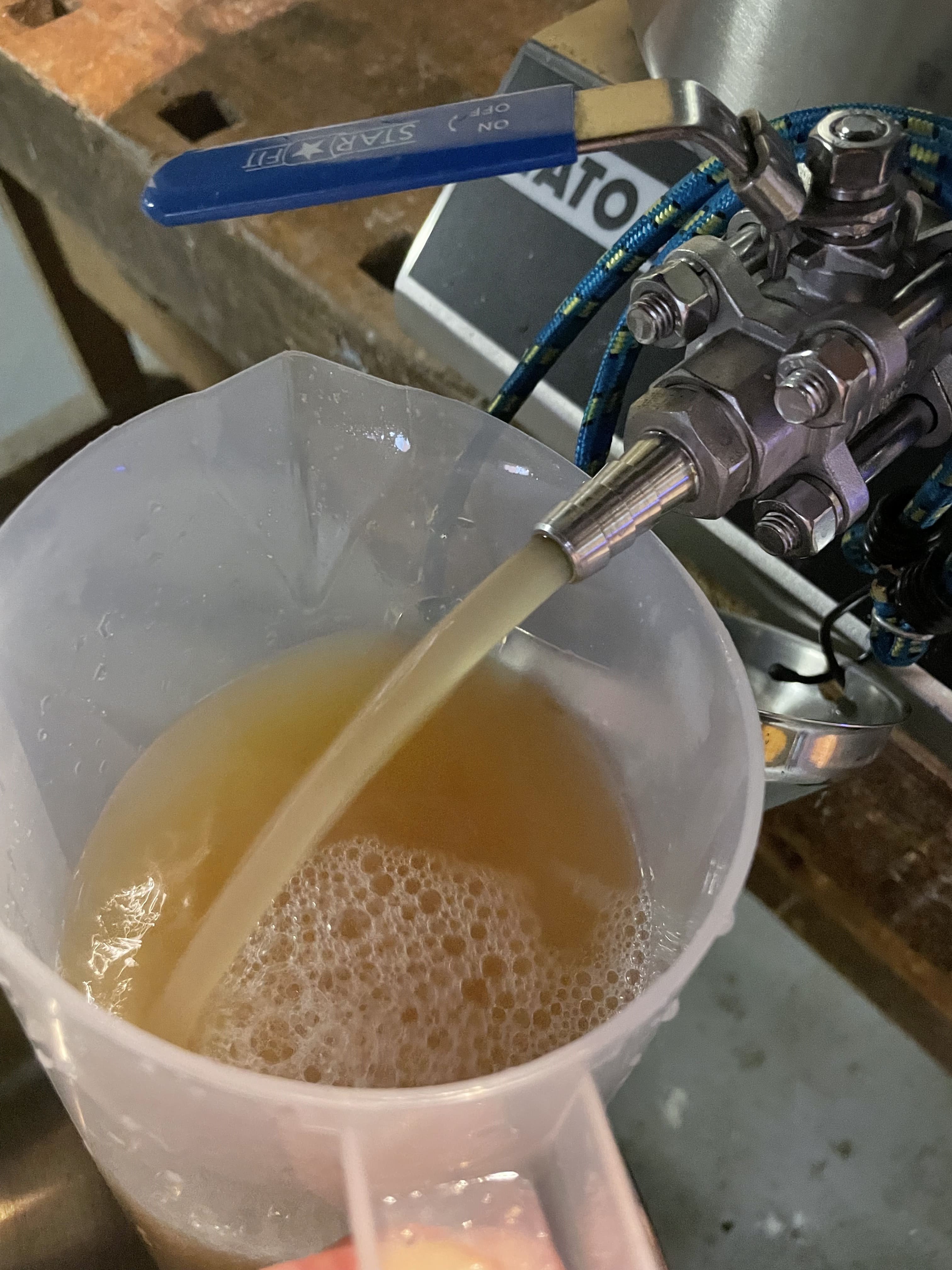 Ich habe ein paar Liter ablaufen lassen. Zuerst war die Würze noch sehr trüb