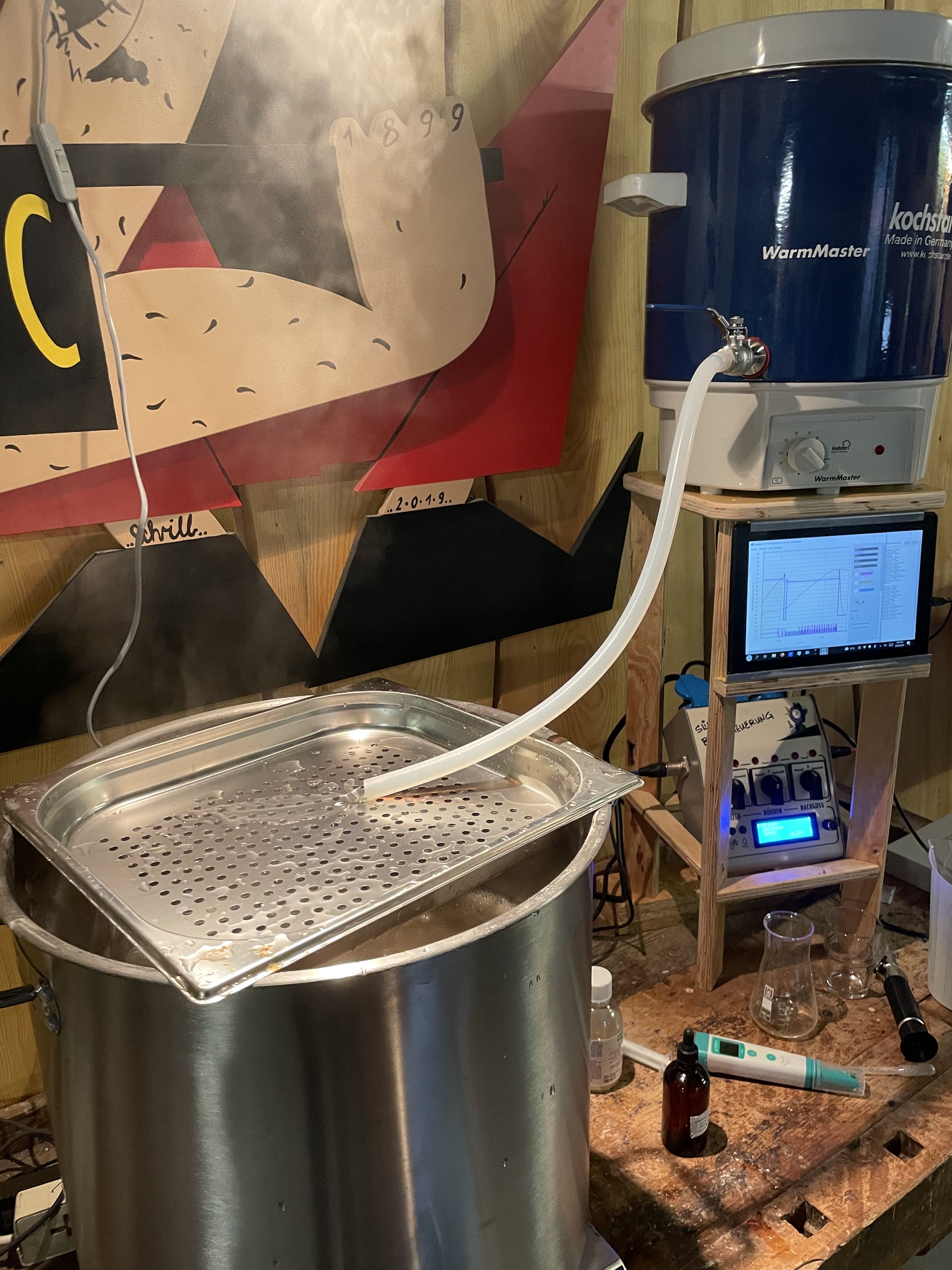 Unser Wasser hier ist zum Brauen für Pilsener und Heller Biere eher nicht so geeignet, weshalb es einer Aufbereitung bedarf. Ich koche mein Brauwasser einen Tag zuvor ab und stelle es dann mit Milchsäure ein. Vollentsalzen und dann neu aufbauen wäre sicher effizienter, aber das ist mir noch eine Nummer zu hoch und ich konnte mit meiner abgespeckten Wasseraufbereitung bisher auch ganz gute Ergebnisse erzielen.