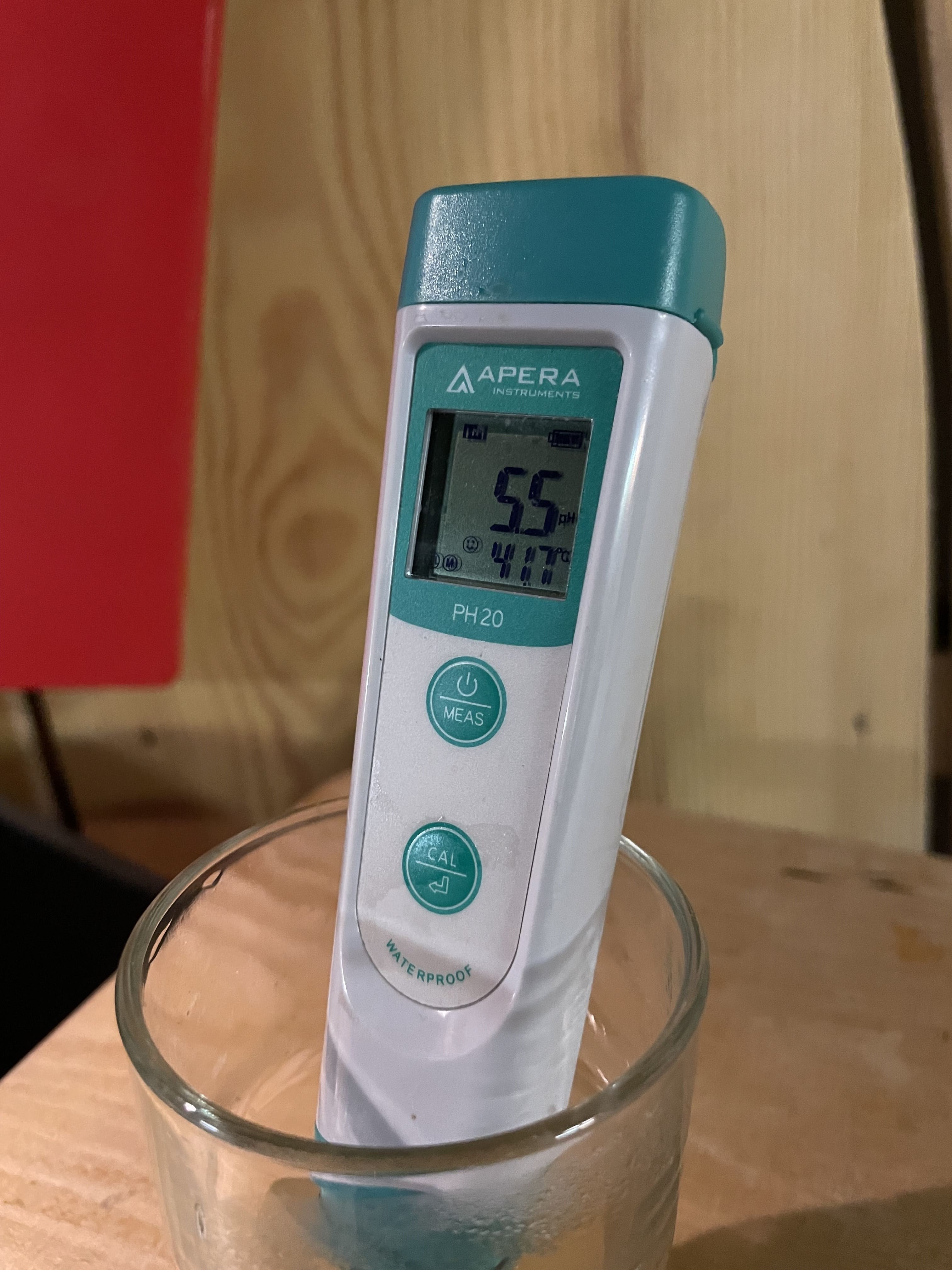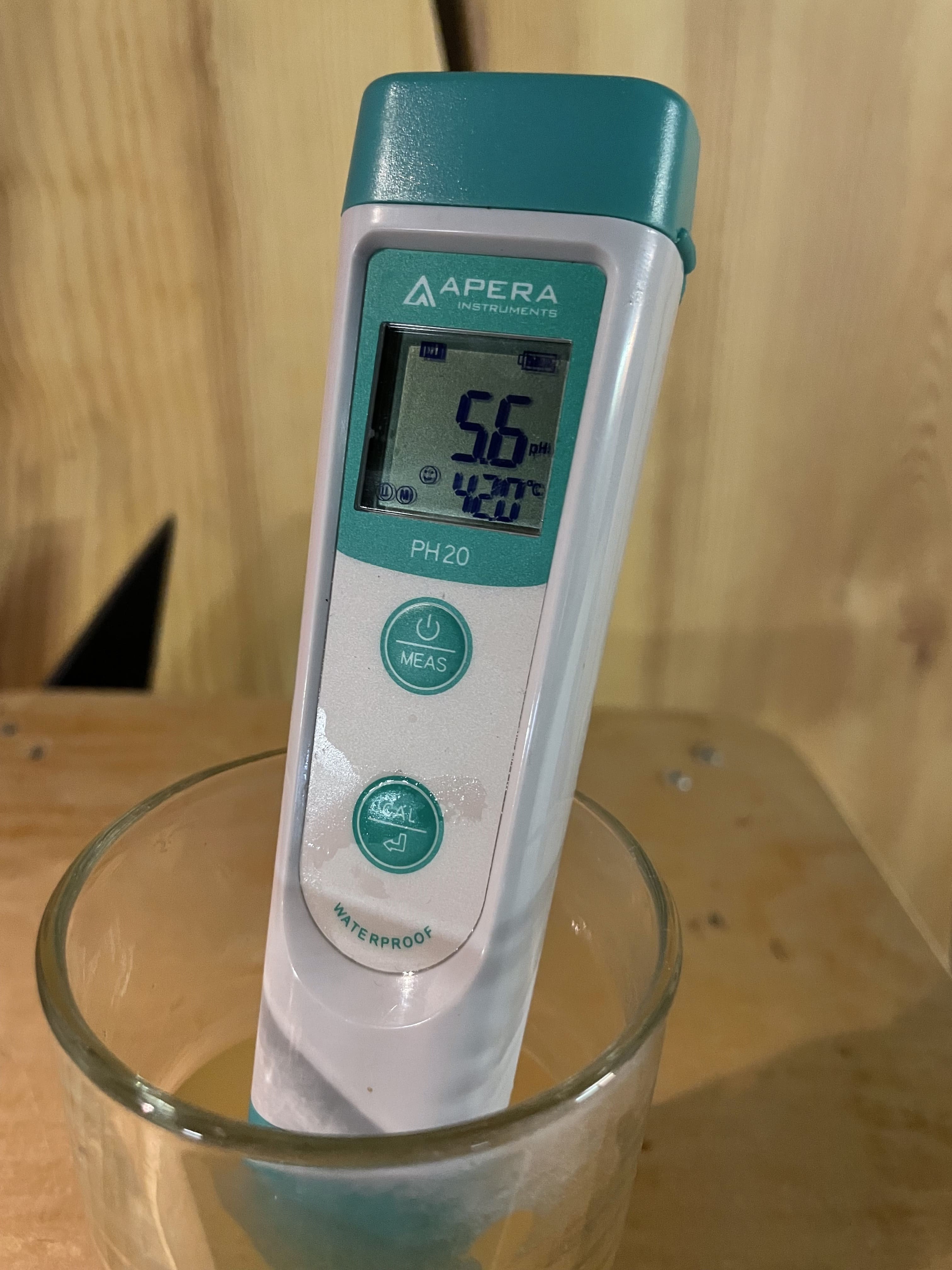 Den angestebten pH Wert habe ich um 0,1 verpasst und bin bei 5,6 gelandet. Da ich noch ein wenig Luft zum Schwellwert für die Milchsäure hatte, habe ich mich dazu entschlossen nochmal 2ml Milchsäure hinzuzugeben.