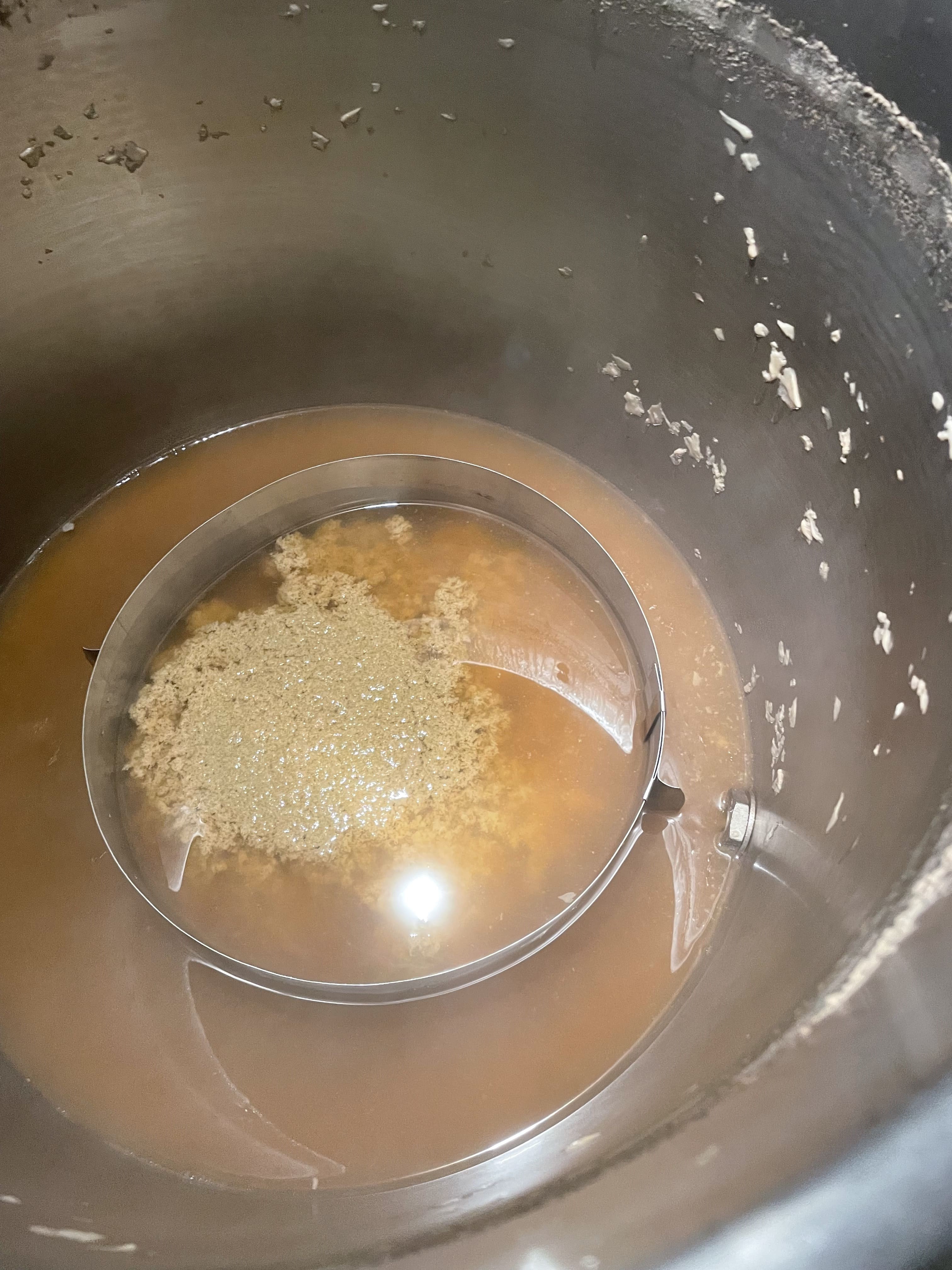Bevor der Treber trocken lief habe ich den Nachguss per Schwerkraft drüber laufen lassen.