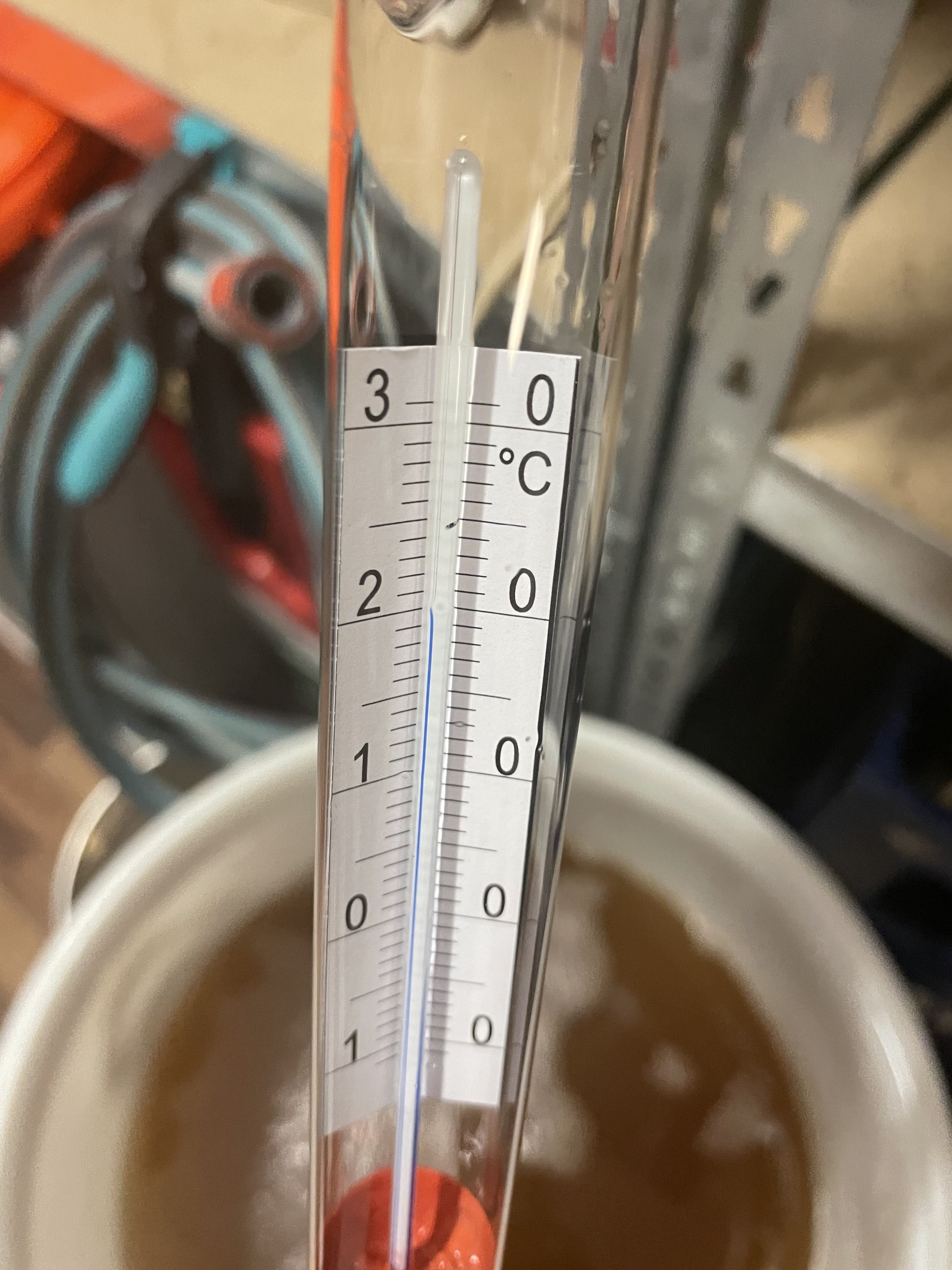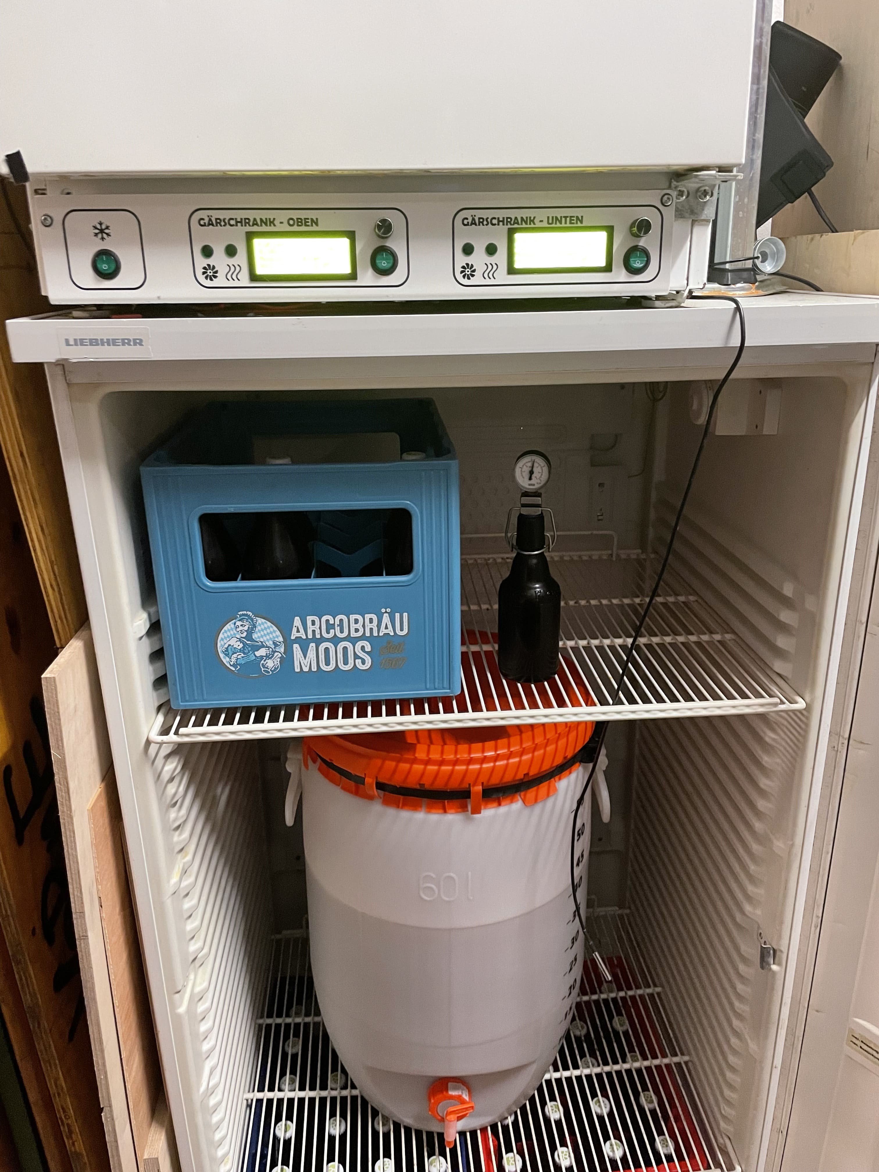 Der Schrank hatte noch ca. 15° und sollte meine 22° warme Würze noch ein wenig runter drücken damit ich bei 17° vergären kann.