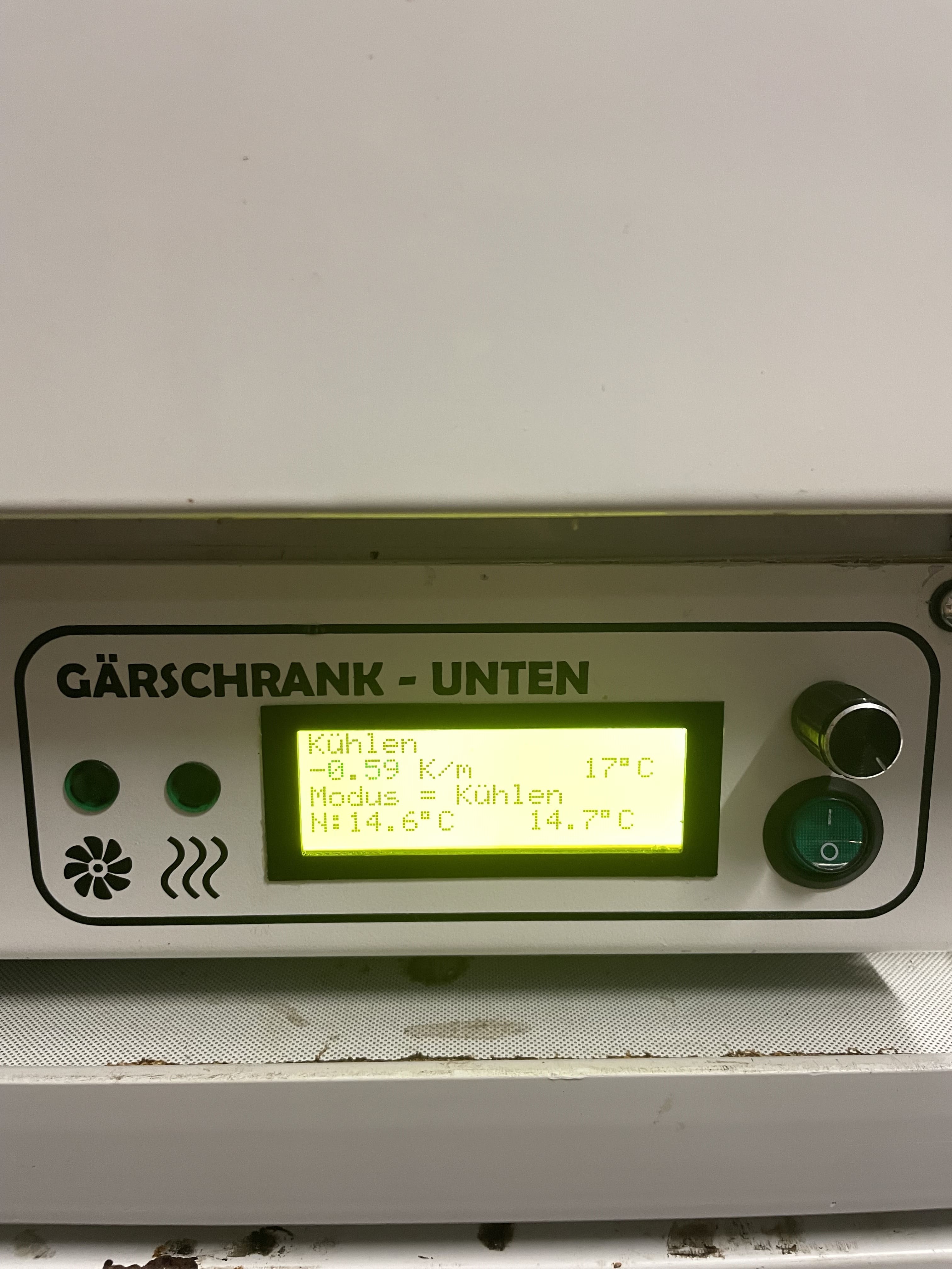 Die Temperatur im Gärraum hat sich auf knapp 17° Grad eingependelt