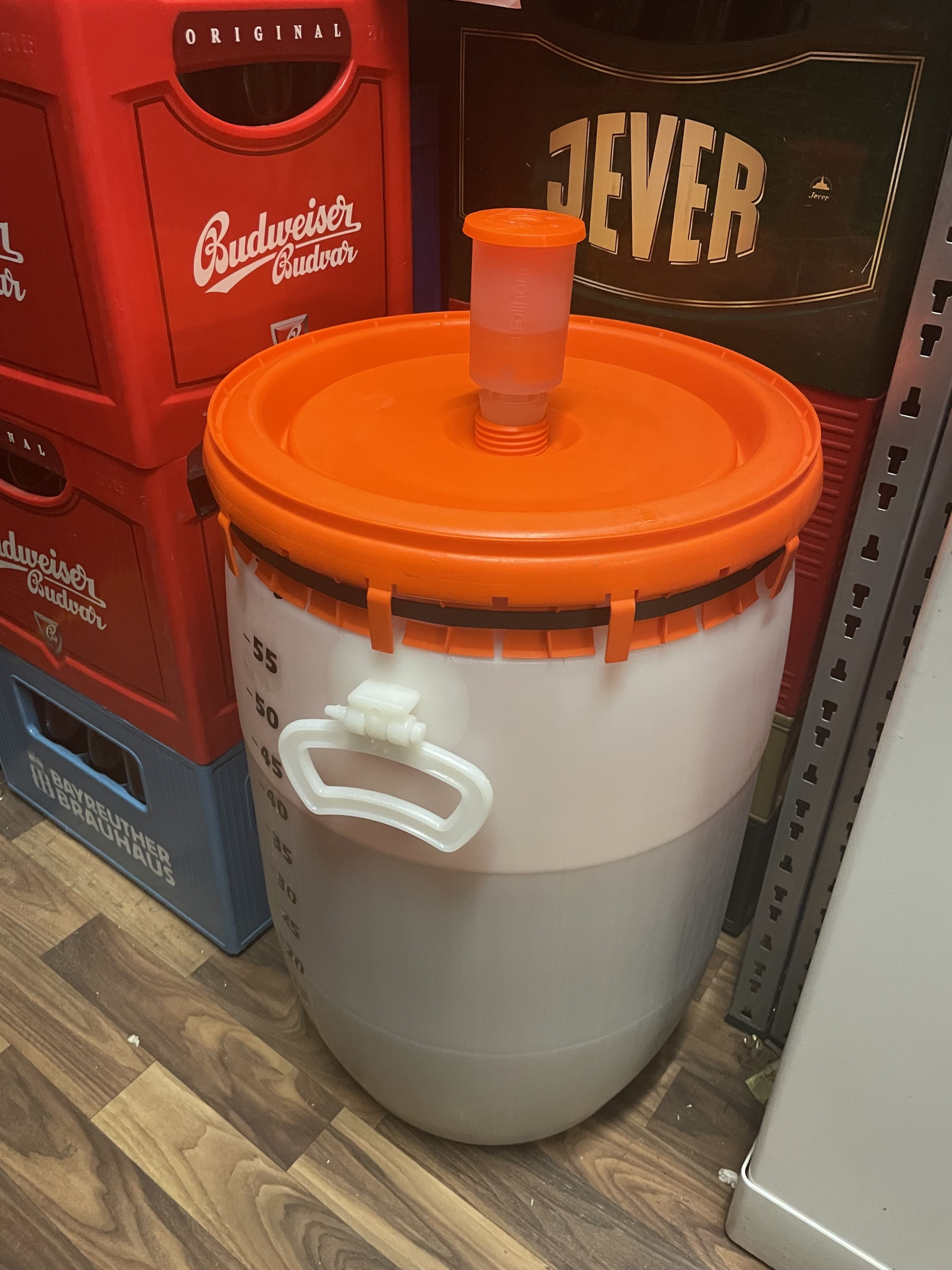 ich würde mir unter das Gärfass noch ne Abstützung im Kühlschrank bauen, und wenn es nur ein Stück Holz hochkant ist... das biegt sich schon leicht durch und darunter hast du Flaschen liegen...