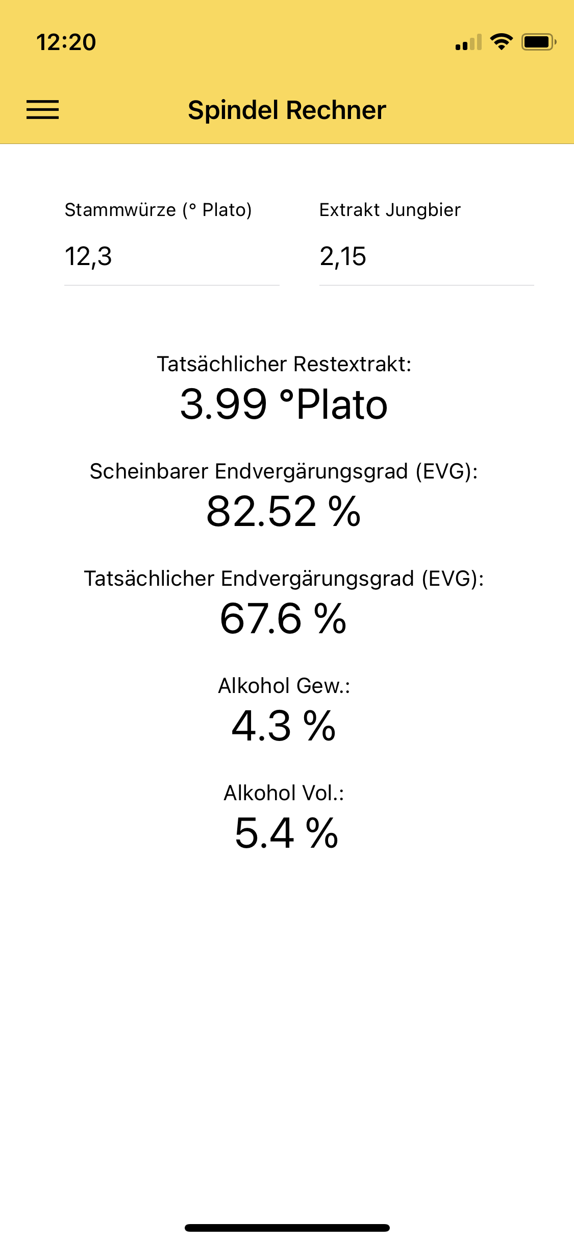 Achso, der Alkoholgehalt kommt dann auch bei 5,4%vol raus, siehe Anhang...