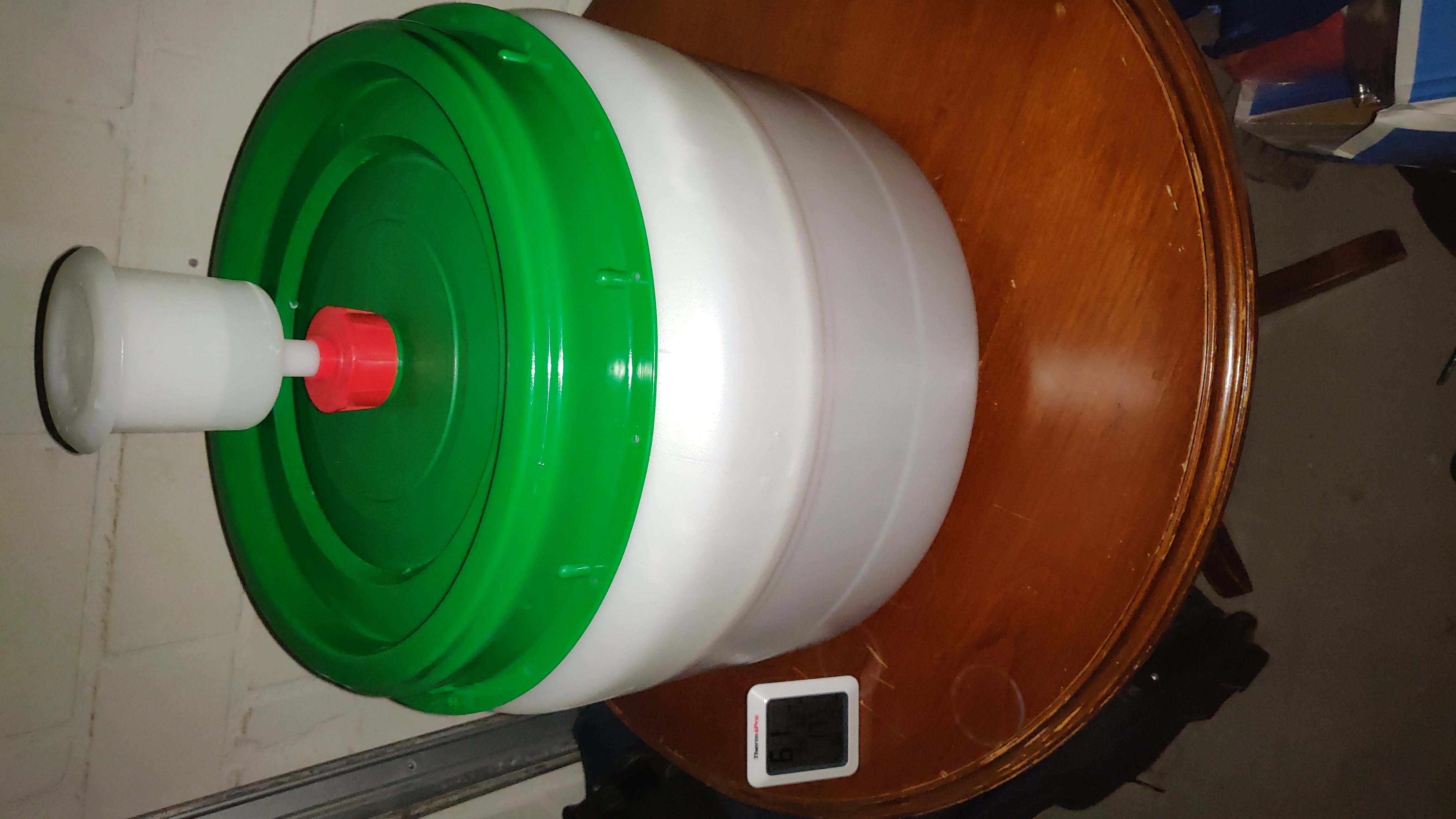 Jetzt über Nacht noch in der Küche stehen gehabt und gerade in den Keller verfrachtet, wo der zweite Sud (nochmal das gleiche Wieß aber mit der Wyeast 2565) bereits steht.