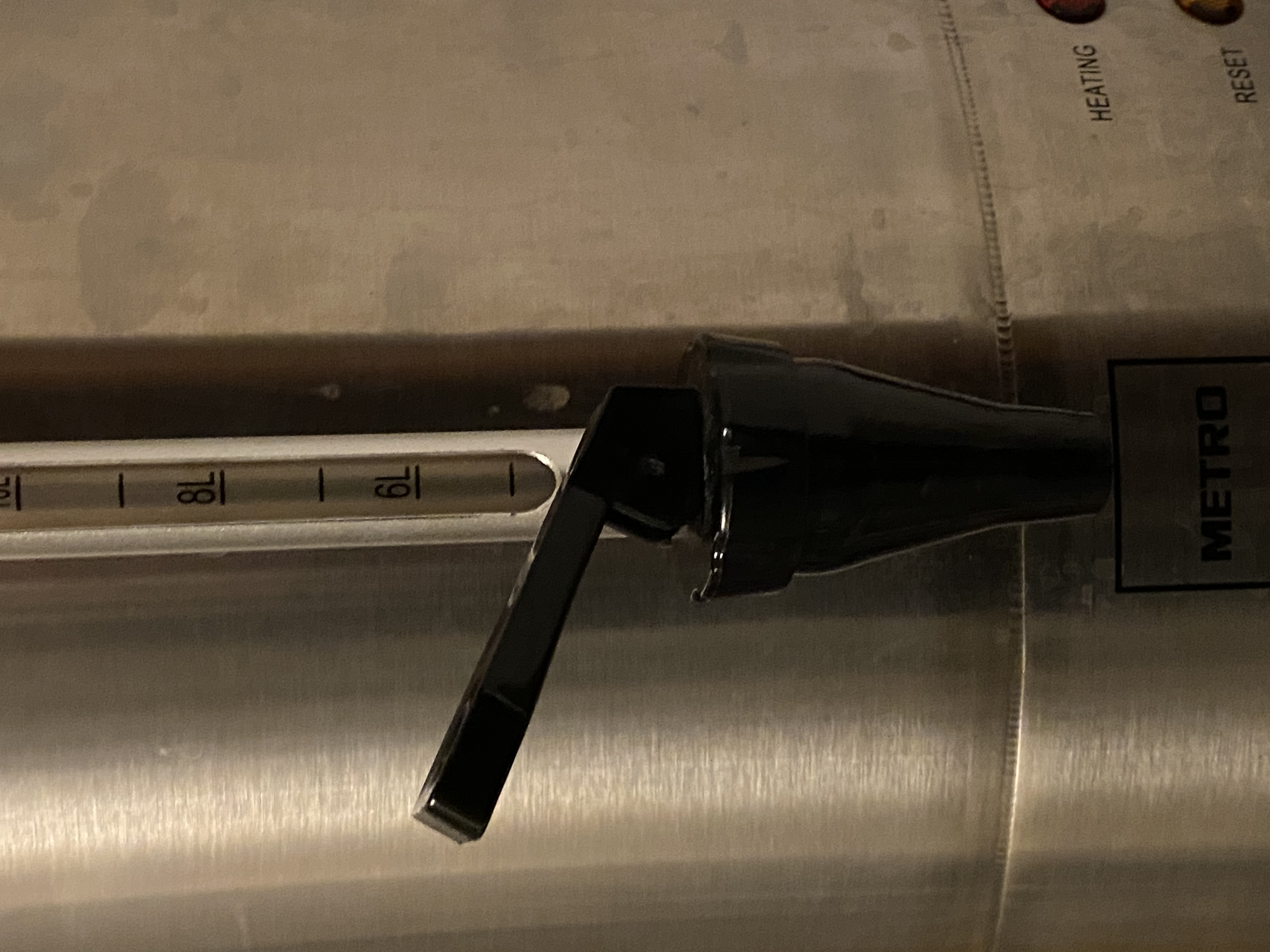 In dem Zuge werde ich wohl auch einen neuen Auslauf für den Einkocher anschaffen, dieser hier rastet leider nicht ein und muss immer gedrückt werden. Die Möglichkeit hier dann noch einen Schlauch anzuschließen um die Würze kontrollier und sorgsam in den Gäreimer laufen zu lassen.