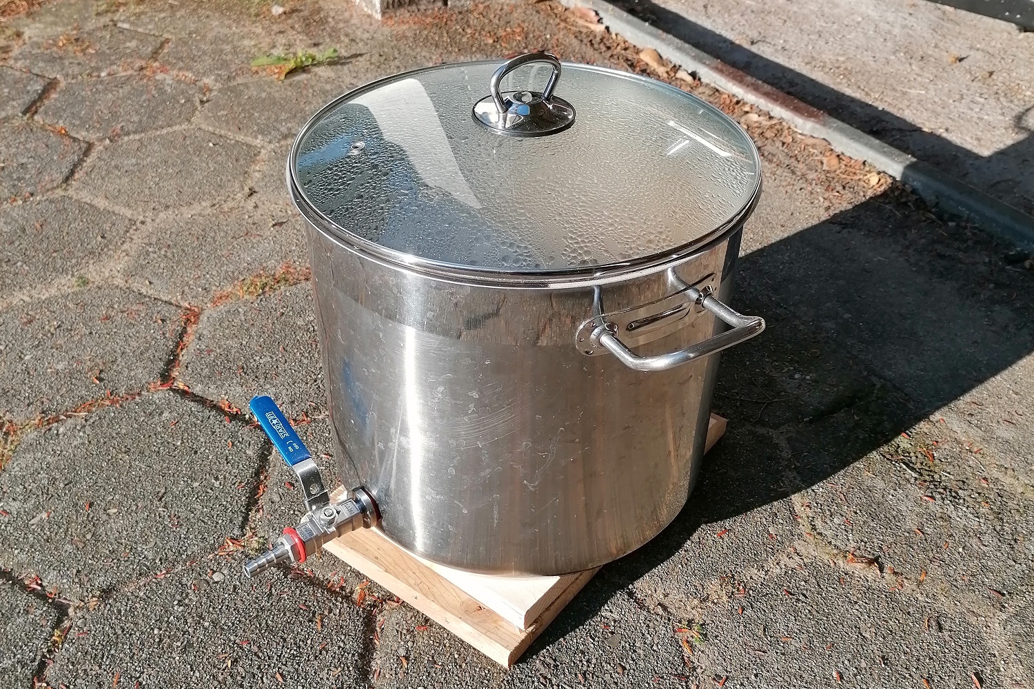Die fünf Steine wurden in den Gärtank für die Würze vorgelegt, da sie mit zur Hauptgärung sollten. Nach dem Whirlpool wurde die Würze wegen möglicher Rückstände durch ein Filter abgelassen.