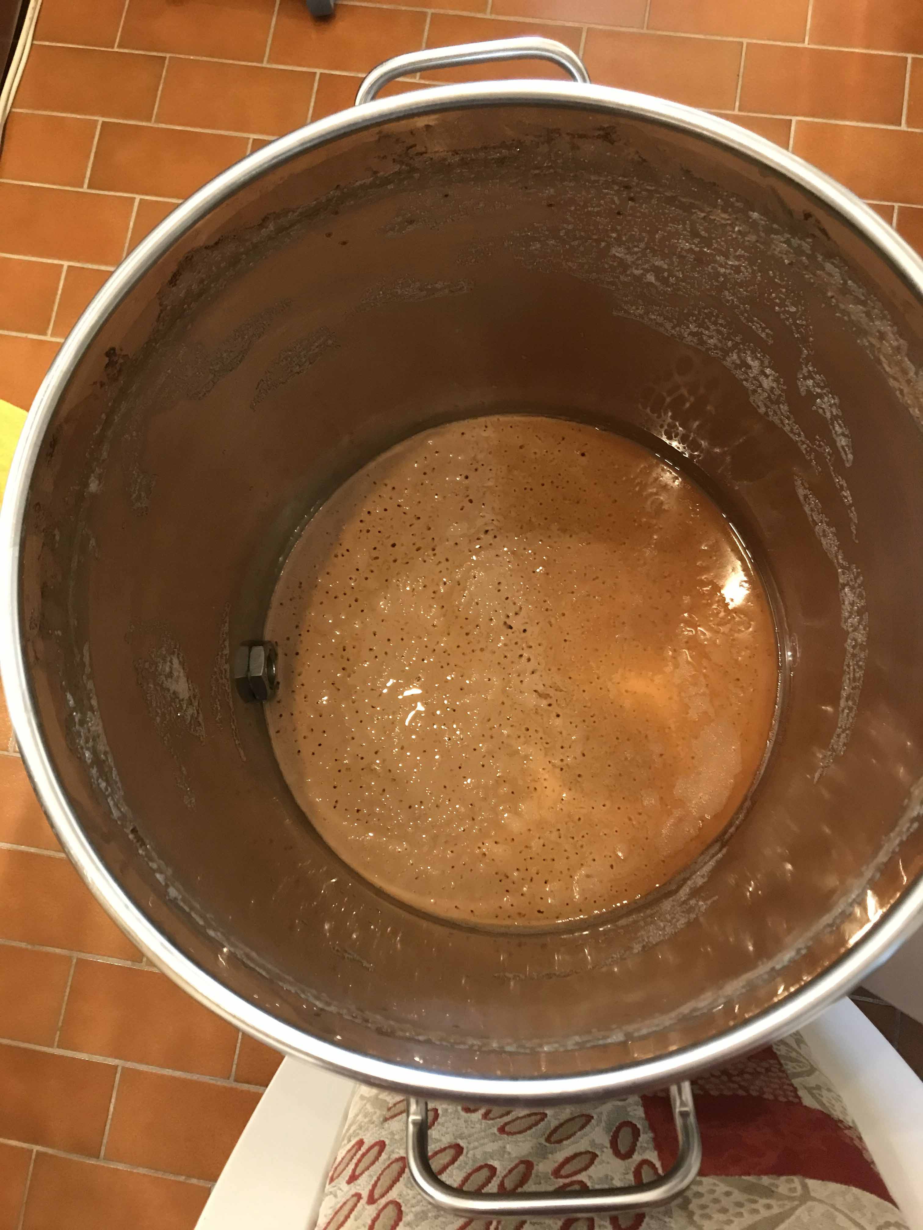 Die Würze plätschert anschliessend in den Gärtopf (Belüftung).