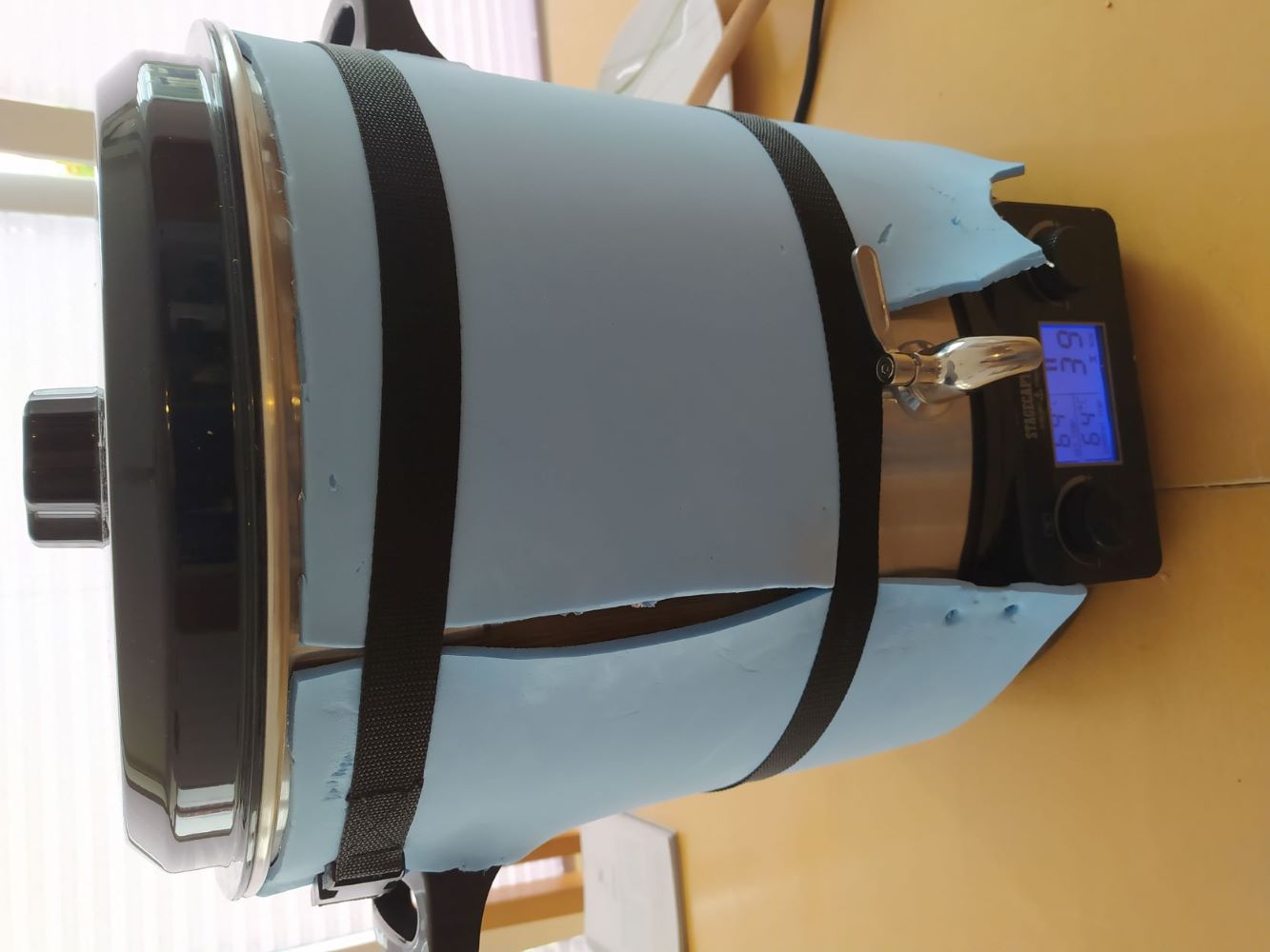 Das Hopfenkochen lief mit dem neu isolierten Einkocher sehr gut. Der Eintauchsieder wurde nur zeitweise zugeschaltet.