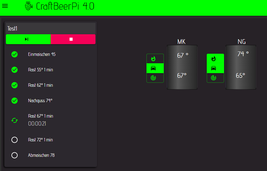 Bin mir nicht sicher, ob es bei mir funktioniert. Ich importiere die Brauschritte des Rezepts über die Brewfather Schnittstelle. Handanpassungen möchte ich mir ersparen - ich stelle die Target Temp einfach per Hand ein - vielleicht kann ich jedoch auch die Heizschritte für den 2. Kessel in BF anlegen. Ich schaue es mir mal an.