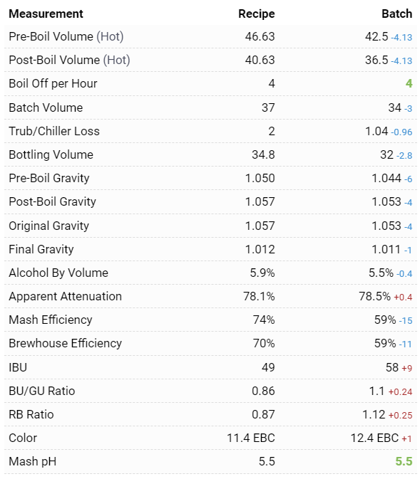 Gemäß Brewfather habe ich eine Effizienz von 59%