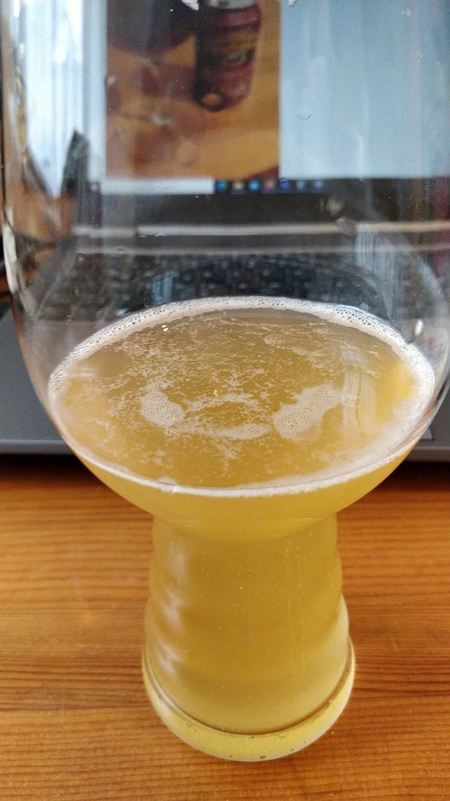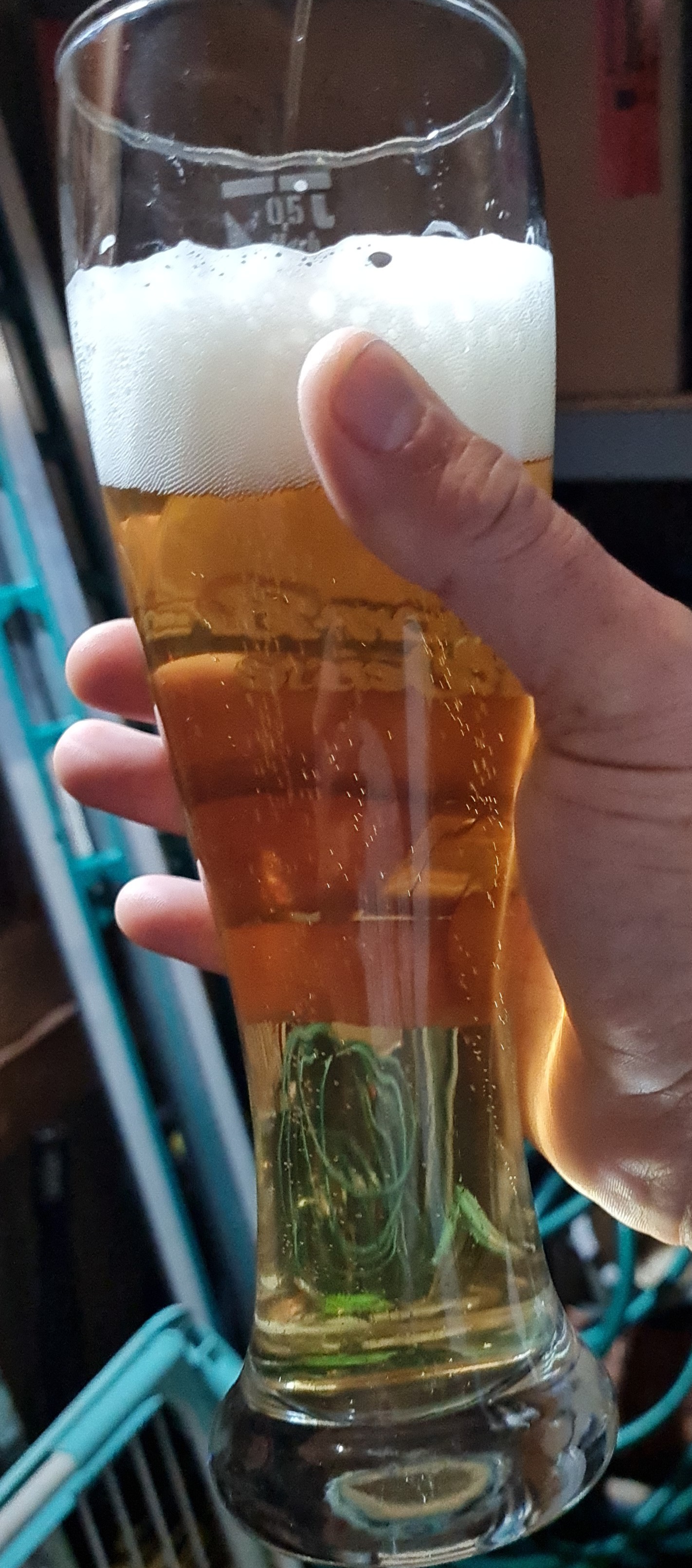 Mein leider das fast leere Pils (im fremden/falschen Glas), das ich zum ersten mal im KEG abgefüllt hatte...Keine Klärungsmittel benutzt.