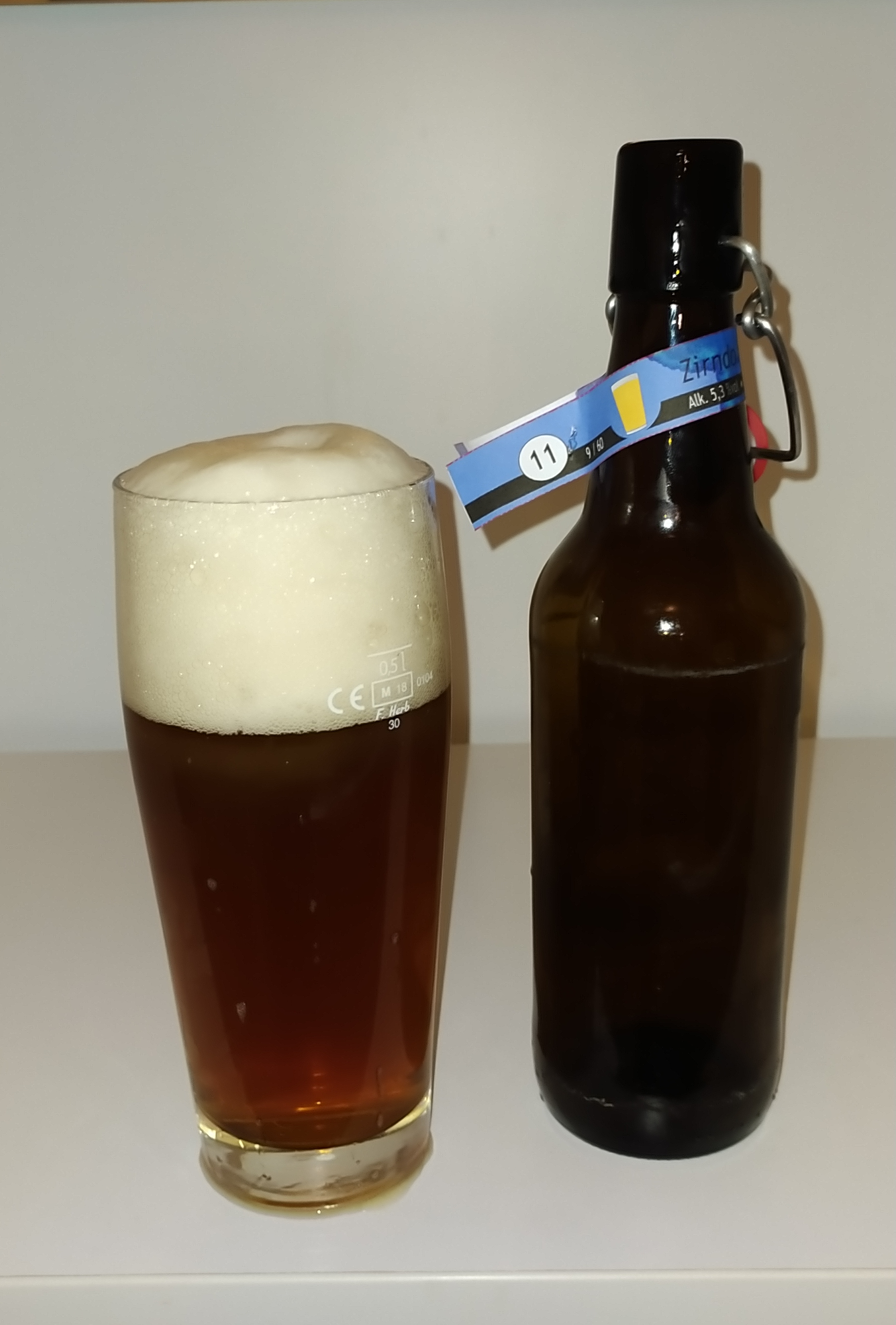 Optik: Sehr schöne Bernsteinfarbe, sehr klar. Toller feinporiger und beständiger Schaum. Optisch echt klasse.