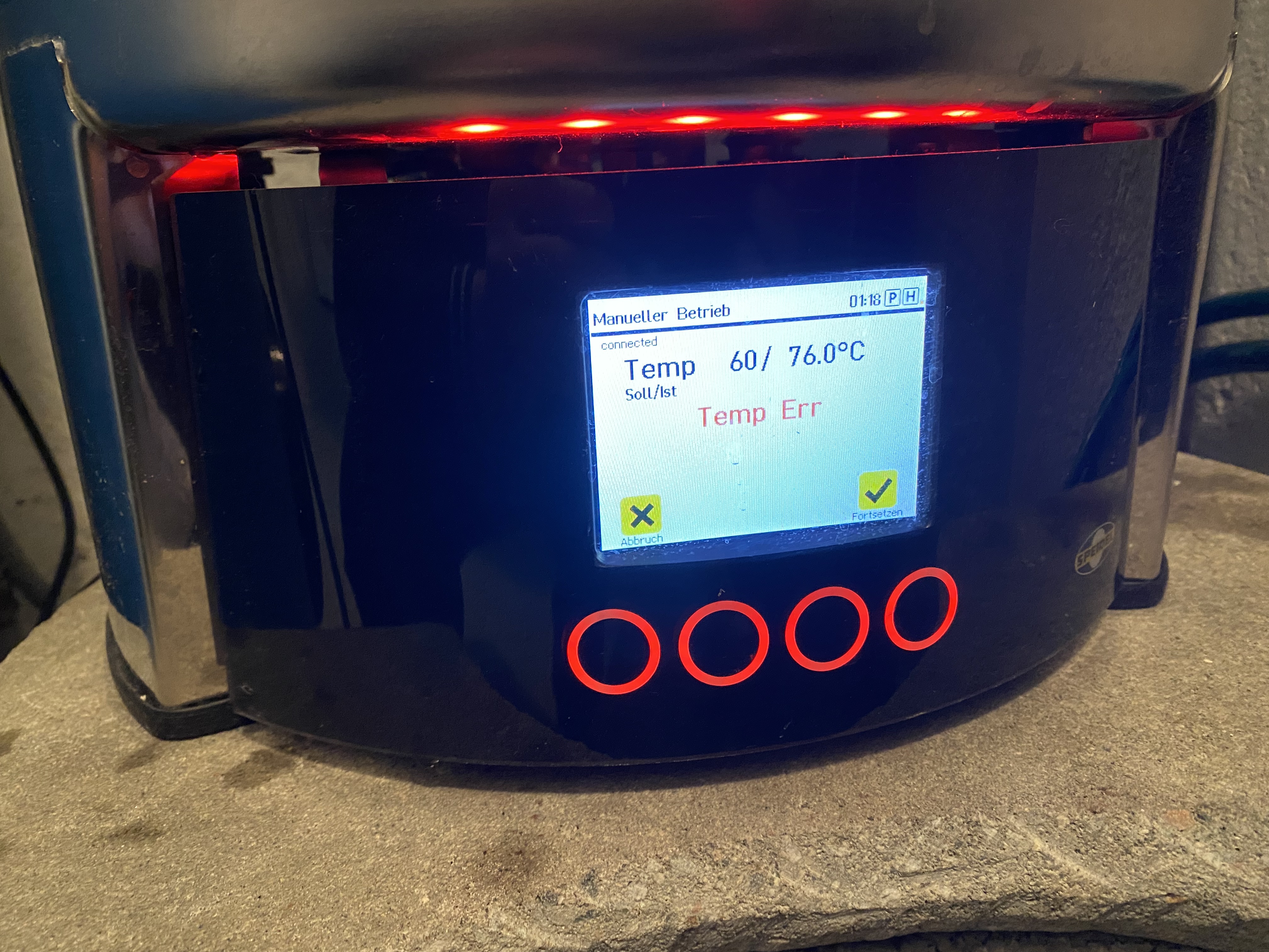 Hatte heute vor meinen Braumeister 20L 3. Generation zu reinigen und Wasser auf 60 Grad aufzuheizen. Das klappt auch gut Bistro in die Haltephase kam, dann ging die Temperaturanzeige innerhalb von 30 Sekunden von 60 auf 73 grad hoch und ein Temp Err erschien. Hatte den Meister dann abgesteckt und der Sensor hat sich wieder auf 60 Grad eingependelt. Ein weiterer Versuch brachte das selbe Resultat.