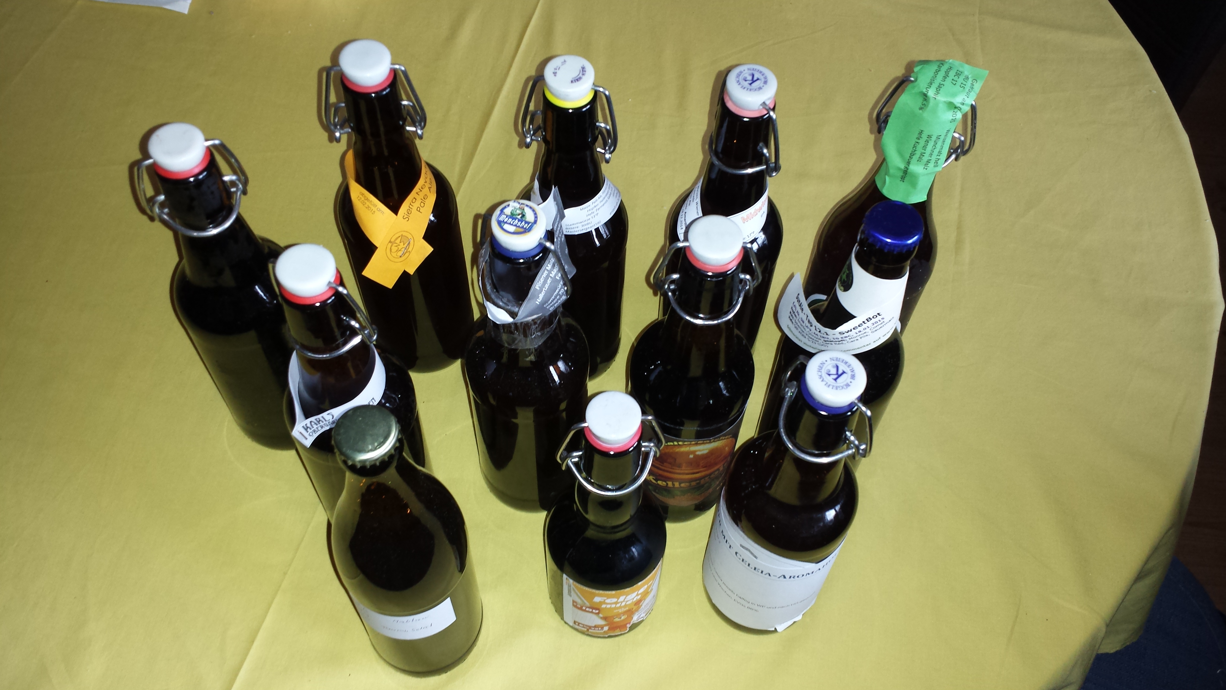 Es sind 6 Stück obergärig, 3 Stück untergärig und 3 mit unbekannter Hefe angestellt worden. Hier fehlten entsprechende Angaben auf den übrigens teilweise erstaunlich kreativ gestalteten Etiketten.