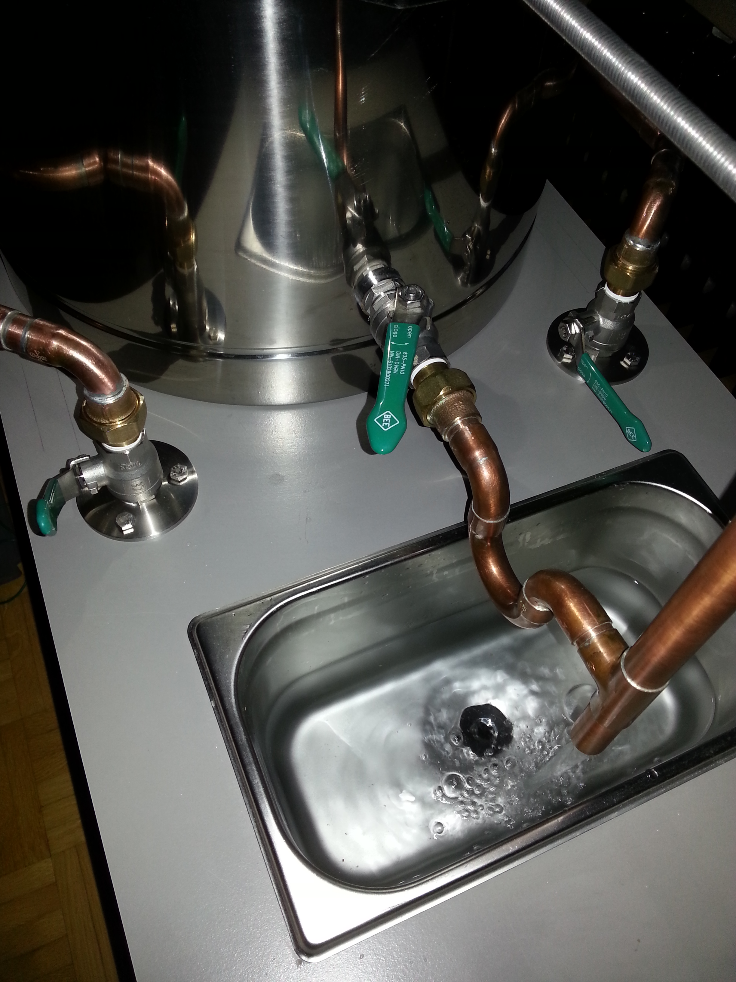 die dann nicht ablaufen können, ohne den Bottich zu kippen. Das wollte ich eigentlich vermeiden.