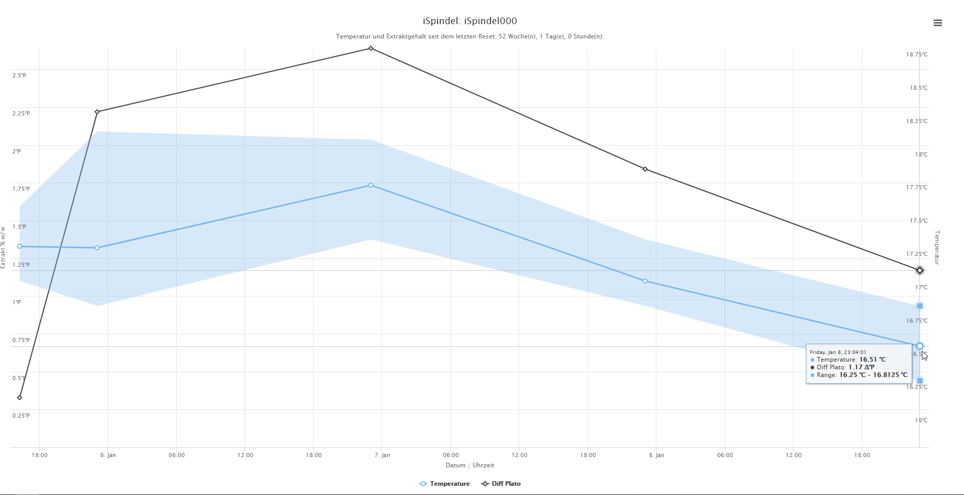 Laut iSpindel hab ich einen Extraktabbau von 0,4 - 0,5 %Brix/Tag.