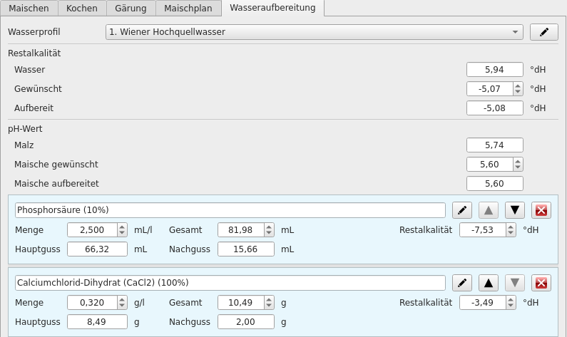 integrator hat geschrieben: Sonntag 19. Mai 2024, 14:59 Wasserwerte und Malz hast du soweit korrekt eingegeben und welche Konzentration nutzt du bei der Phosphorsäure?