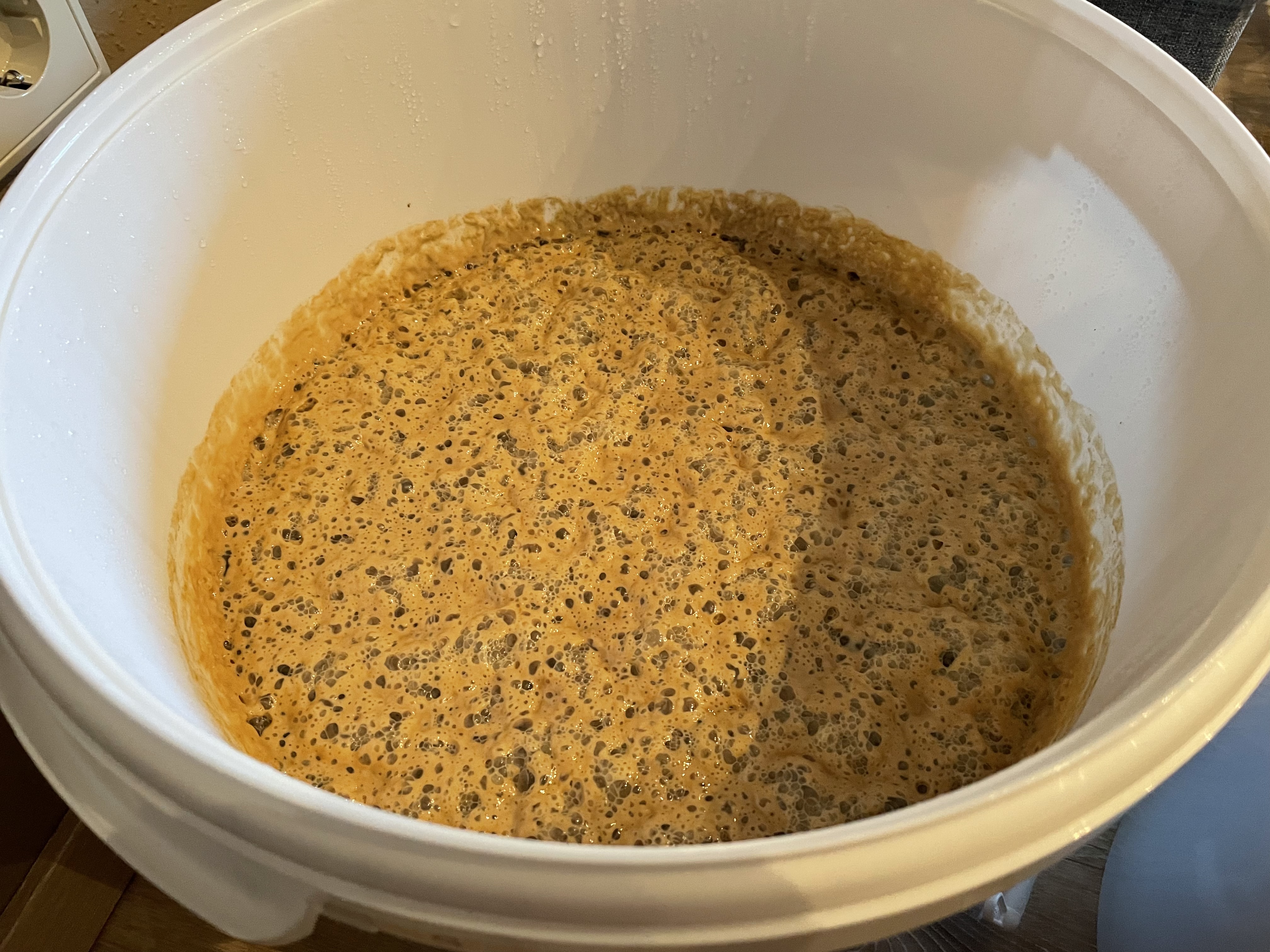 Im Gegensatz zu meinem ersten Sud ist dieses Mal die Hefe noch OBEN.