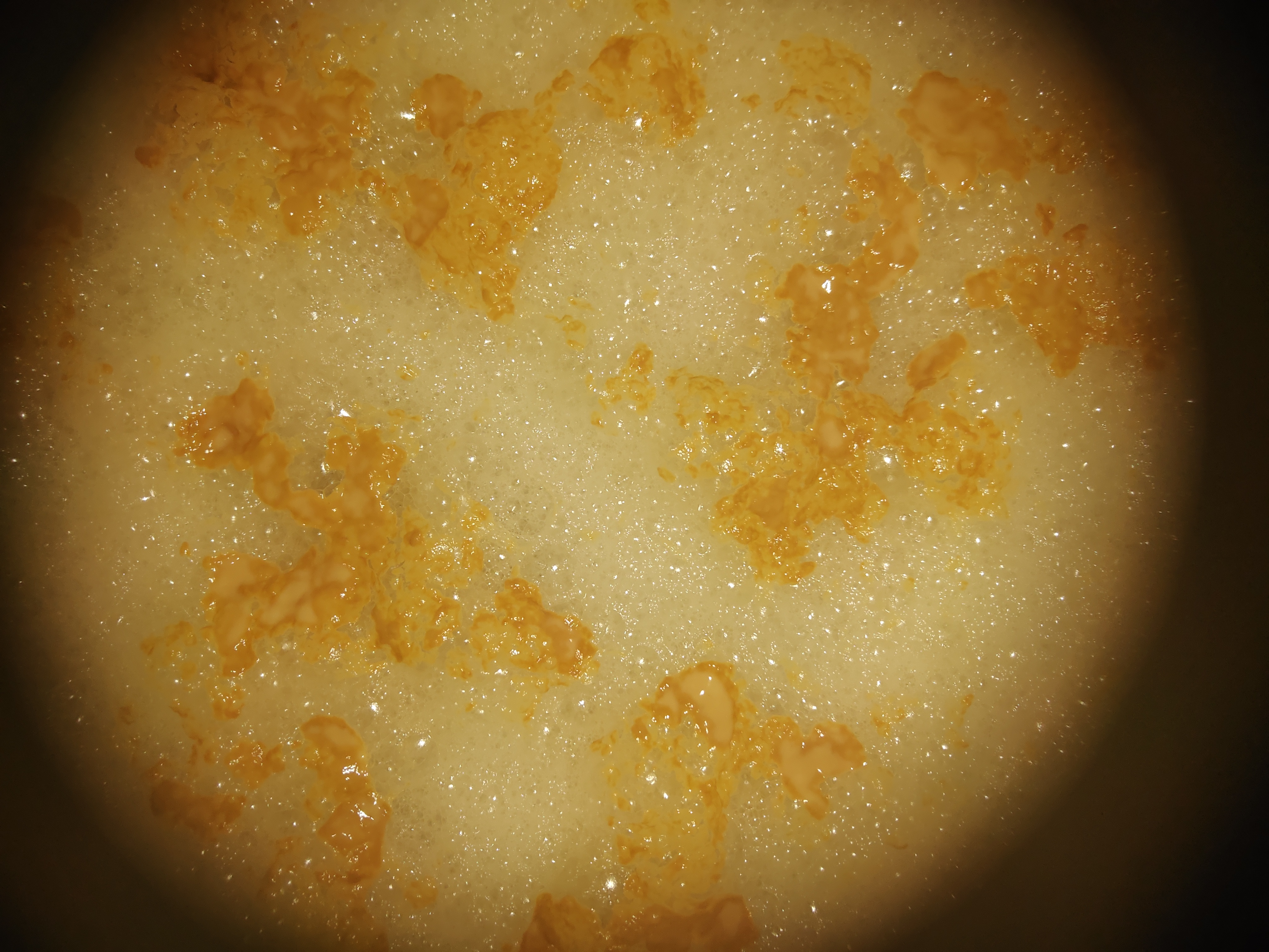 Die Hopfenkräusen kommen daher, dass ich nur mit der Hopspider gekocht und anschließend nicht mehr gefiltert habe. Kommt aber sowieso noch eine anständige Ladung zum Stopfen rein mit anschließendem ColdCrash.