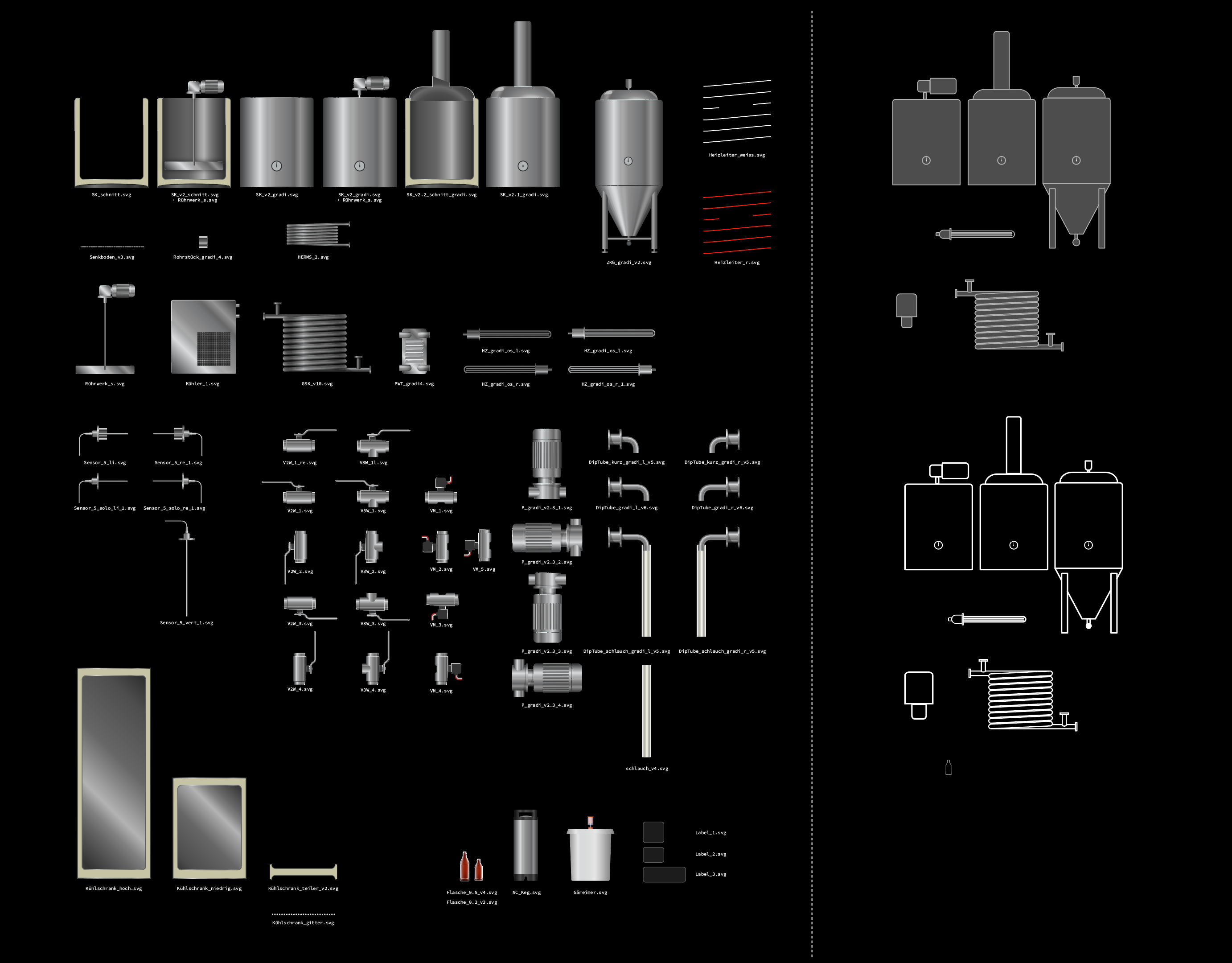 Da man in CBPI die SVG Grafiken nicht drehen kann, habe ich einige Icons in 4 verschiedenen Ausrichtungen ausgegeben.