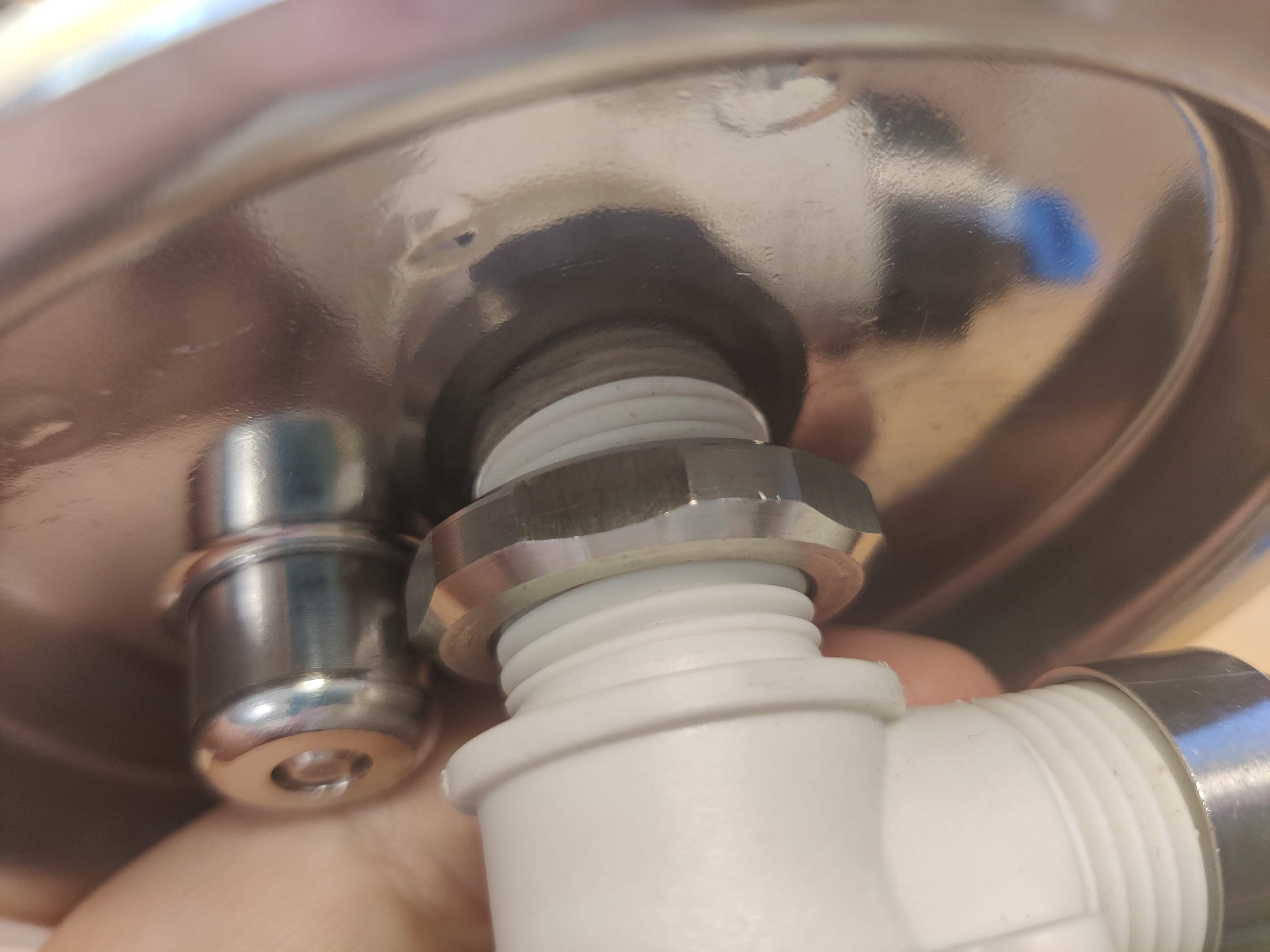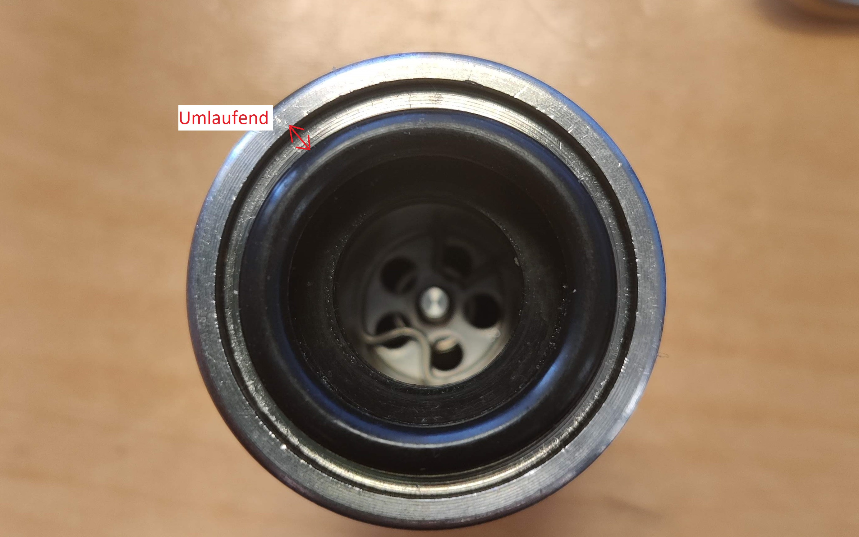 Laut der Anleitung von Kegland sollte es zwei Dichtungen geben eine für innen und eine für außen. Beide sollten in die Ausnehmung passen. Bei meiner Kontermutter (innen) ist überhaupt keine Ausnehmung für eine Dichtung. Beim Teil außen ist die Dichtung kleiner als die Ausnehmung.