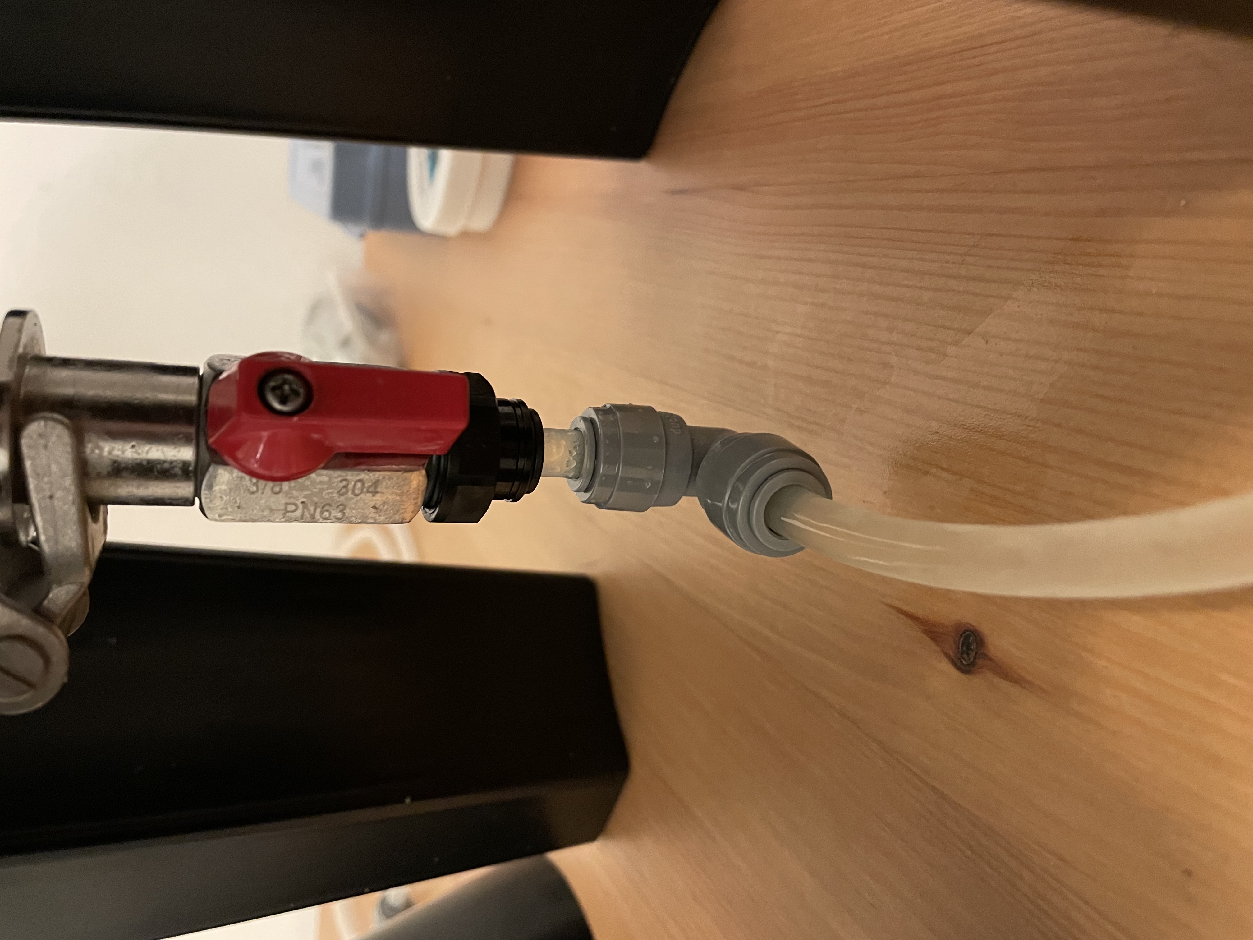 Geh am besten nach dem 3/8-JG/Duotight Adapter mit einem elbow um 90grad, dann hast du weniger Sorgen, dass das dicht wird: