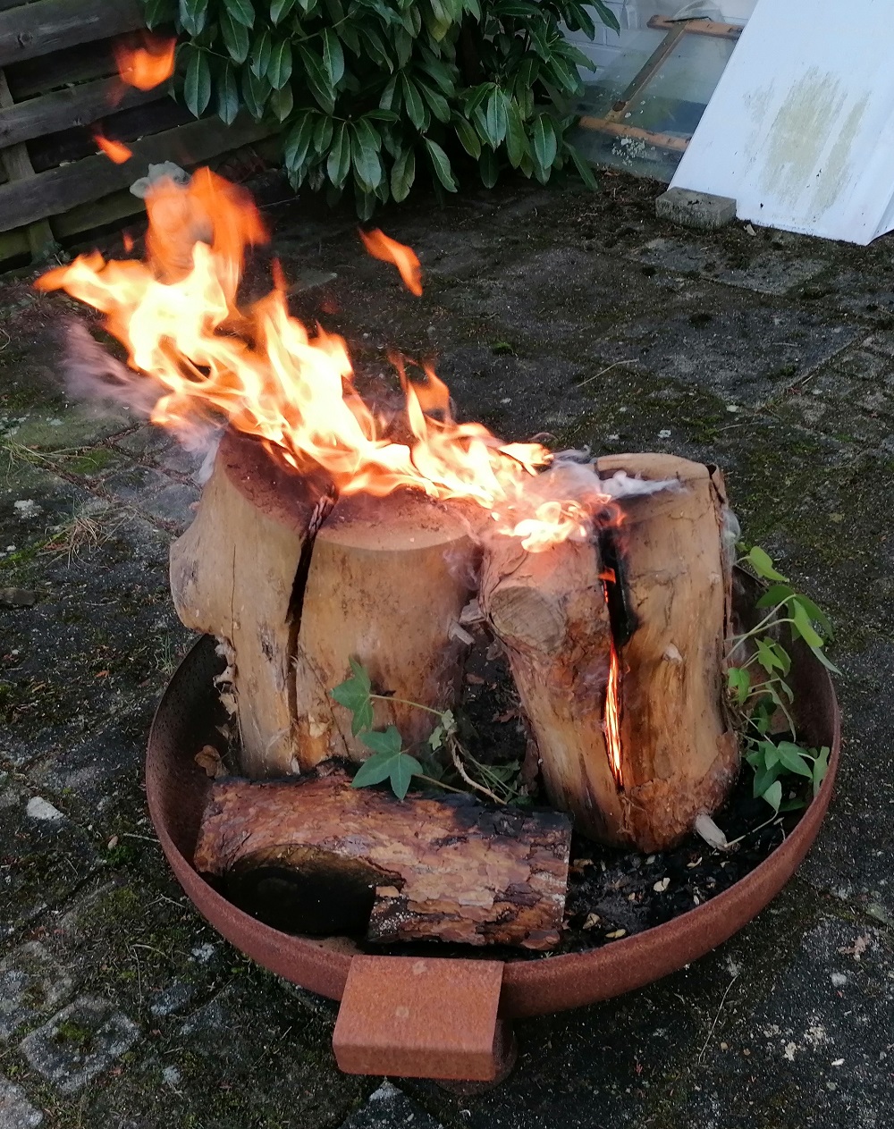 Beim 2. Mal sind mir die Steine ja schon nach 10-20 Minuten in der Feuerschale zu heiß geworden.