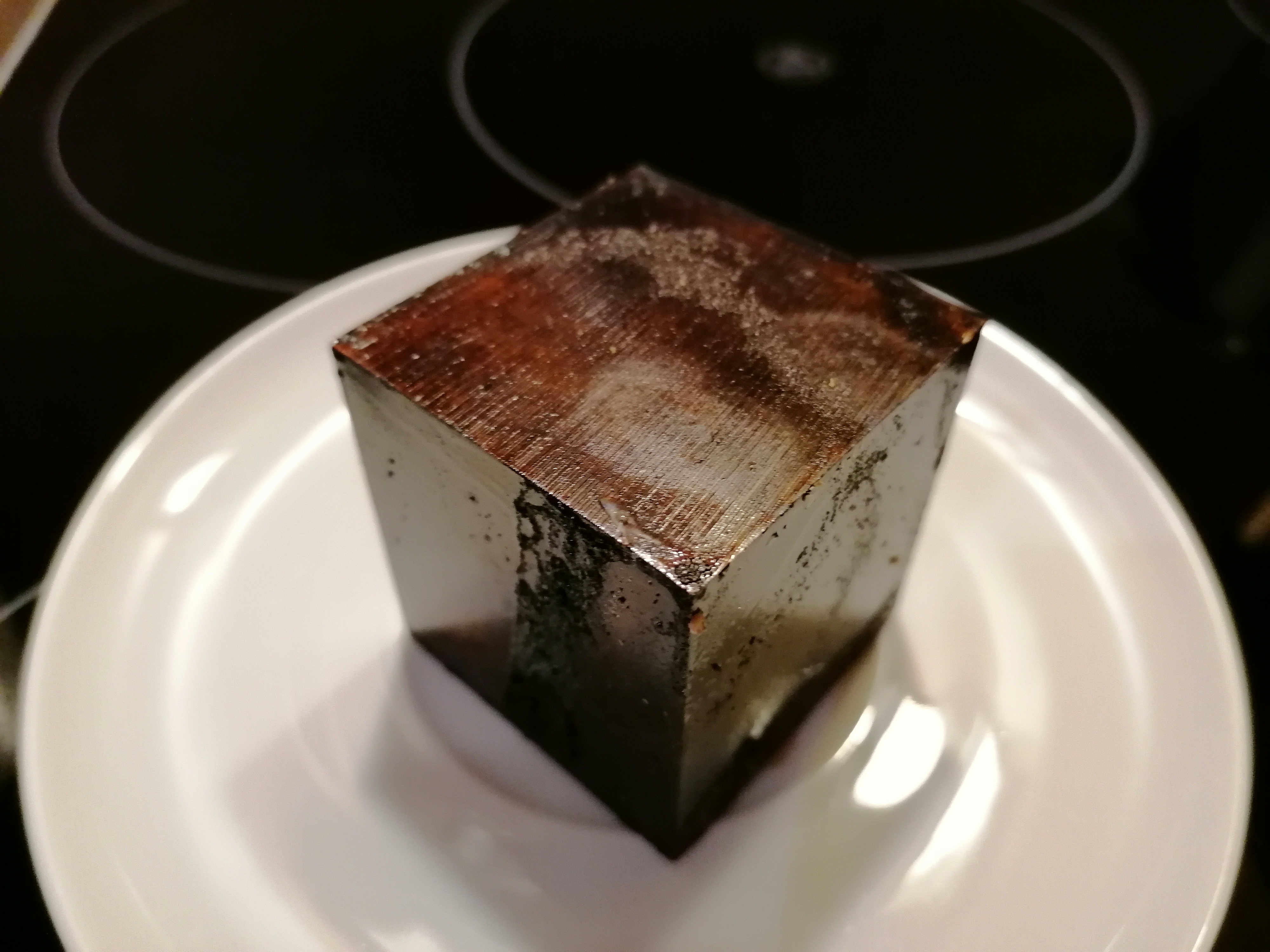 Wie sähe es aus, wenn man statt Würfeln eher (Riffel)Bleche oder Rohre (bzw. Rohr-Ringe) nähme? Da ist zwar das Volumen/Masse geringer, bei jedoch deutlich größerer Oberfläche. Es geht ja dabei nicht wirklich darum, den Sud mittels der Steine/des Stahls zum Sieden zu bringen, sondern eher den enthaltenen Zucker zu karamelisieren.