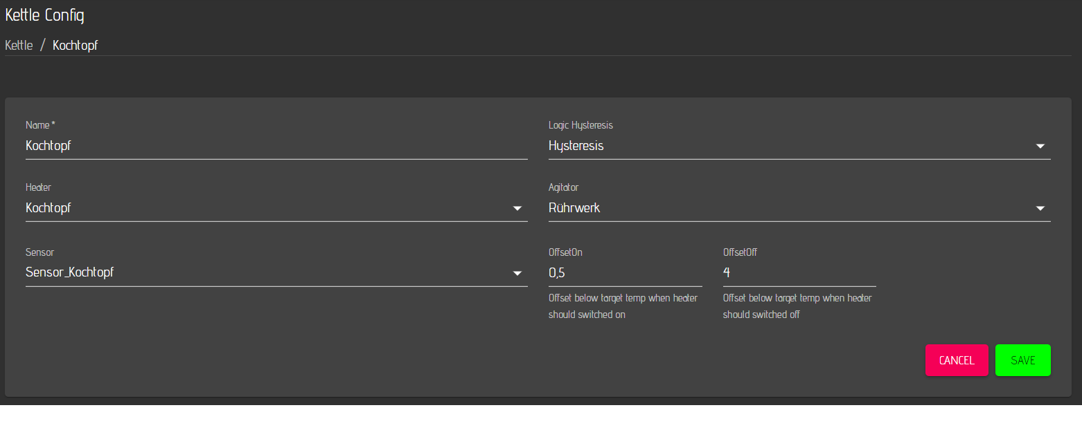 So, CBPI4 läuft allerdings habe ich glaube ich ein kleines Verständisproblem bei der Kettle-Konfiguration. Ich verstehe die Werte und die Logik nicht ganz hinter den Feldern: