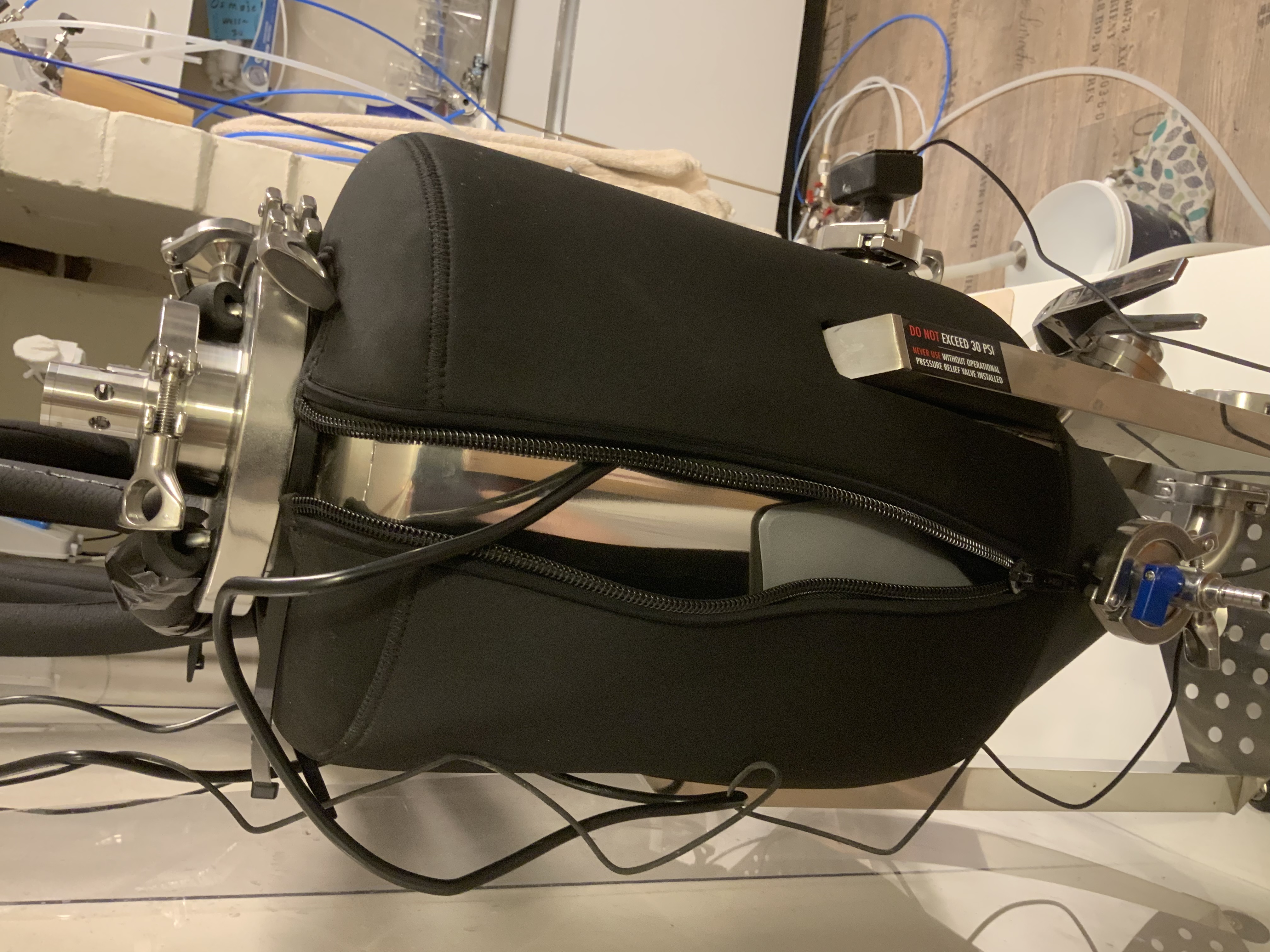 das ist ein 200 Liter ZKG von Wagner, das bei (meist ) 10-15°C Raumtemp. in der Brauerei steht. Ich glaube die hast du ja auch, oder? Deshalb sehr nützliche Info, wie sich das mit Isolierung verhält. Ich hatte bisher ja noch keinen Sud drin. Platz für eine Heizpatrone ist auch, statt Karbonisierungsstein. Das ist natürlich die einfachste Variante, aber da habe ich eine (unbegründete?) Angst, dass die punktuelle Wärme der Hefe nicht gut tut.