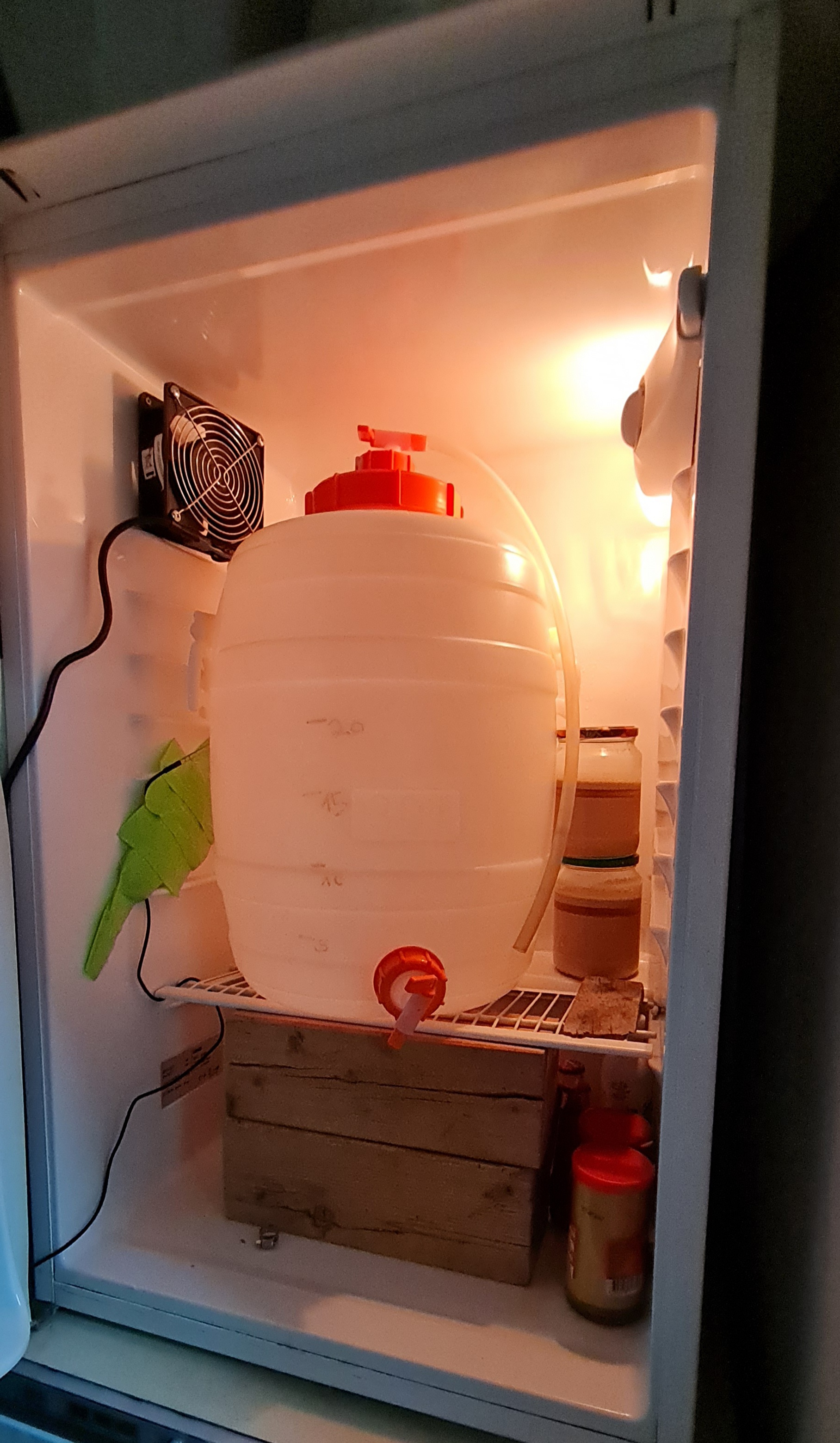 ich stehe vor folgendem Problem, ich habe mir ein Gärkühlschrank angeschafft und aus den räumlichen Gegebenheiten kam schlicht und einfach nur ein einziges Modell in Frage, also nach dem Motto gekauft: Der 30er Gäreimer wird schon passen, sonst lass ich mir halt was einfallen! :thumbsup